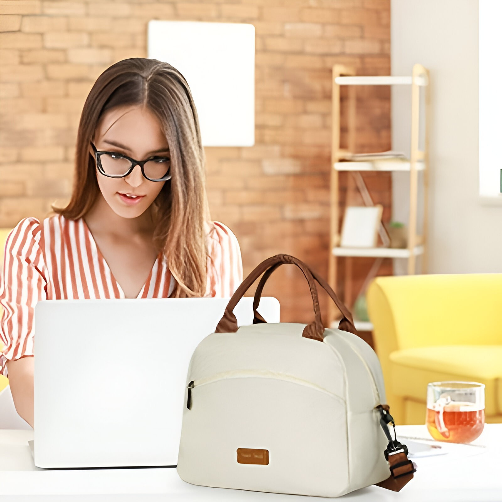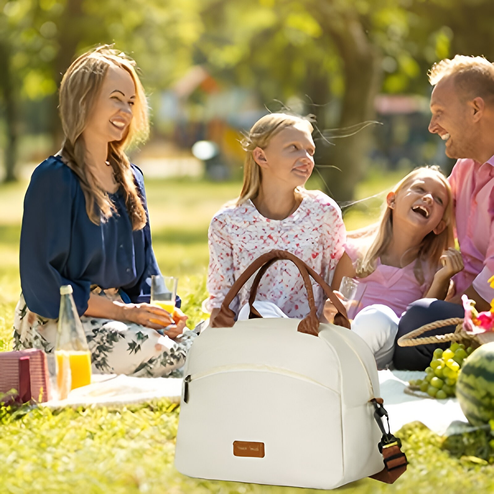 Geanta Termica pentru Pranz , Multifunctionala, Compartimentata, Impermeabila, 2 Tipuri de Manere, 26x14.3x21.2 cm, Crem