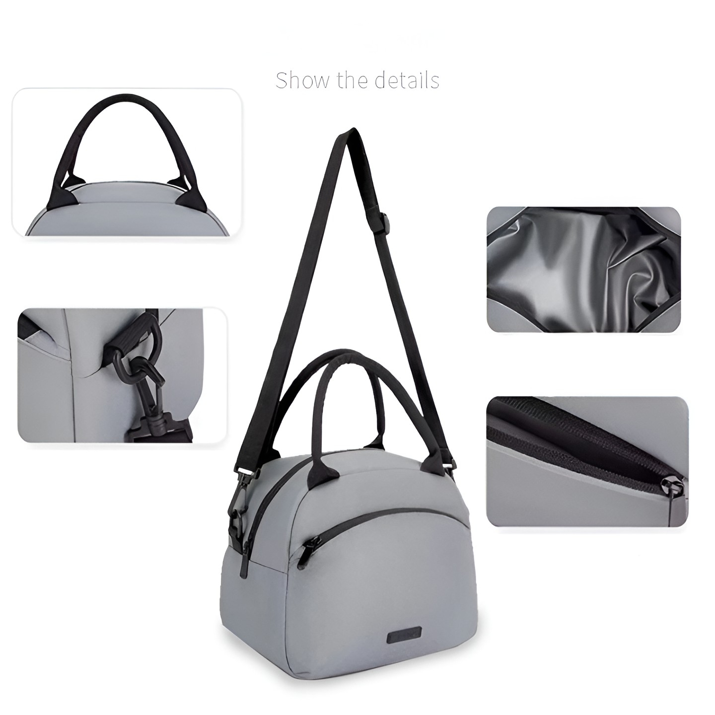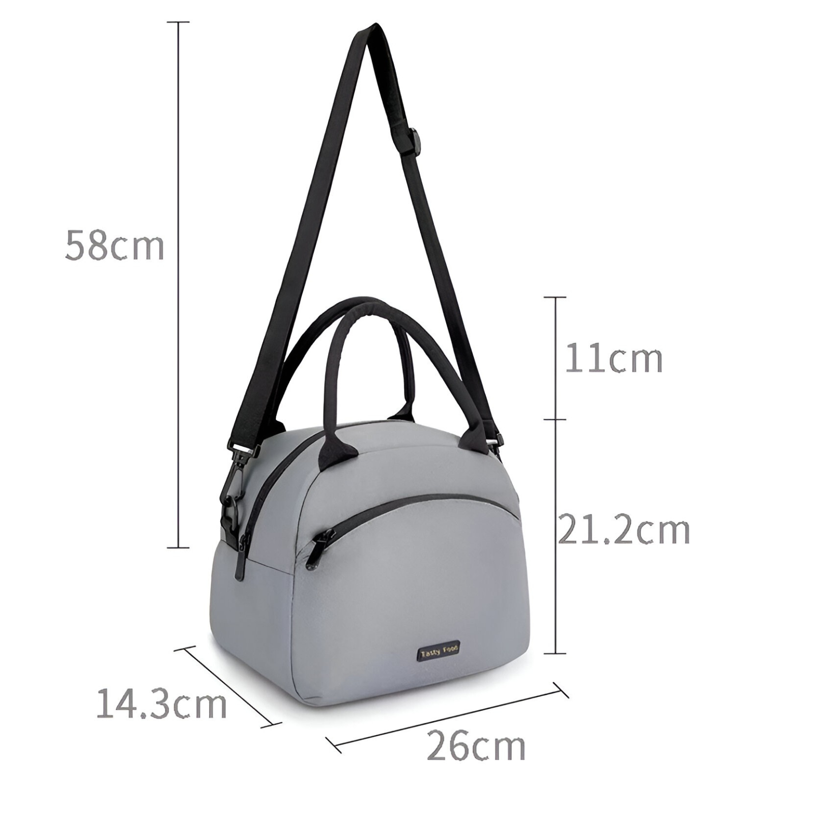 Geanta termica pentru pranz , multifunctionala, compartimentata, impermeabila, 2 tipuri de manere, 26 x 14.3 x 21.2 cm, Gri