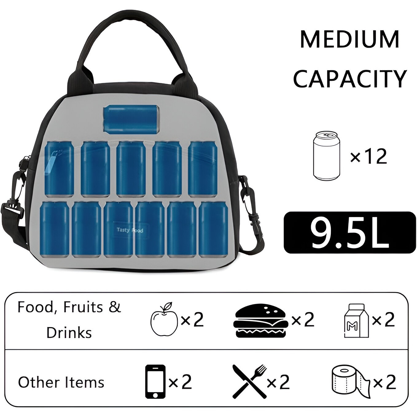 Capacitate: suficientă pentru a găzdui o cantitate mare de alimente, pachetul frontal poate stoca tacâmuri, condimente și obiecte mici, facilitând luarea mesei.
