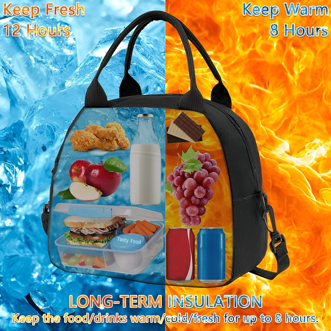 Gama largă de aplicații .Poți lua geanta cu tine peste tot: la școală, la serviciu, la universitate, dar și într-o excursie în camping sau la munte. Vă va permite să mâncați alimente proaspete și calde indiferent de loc.