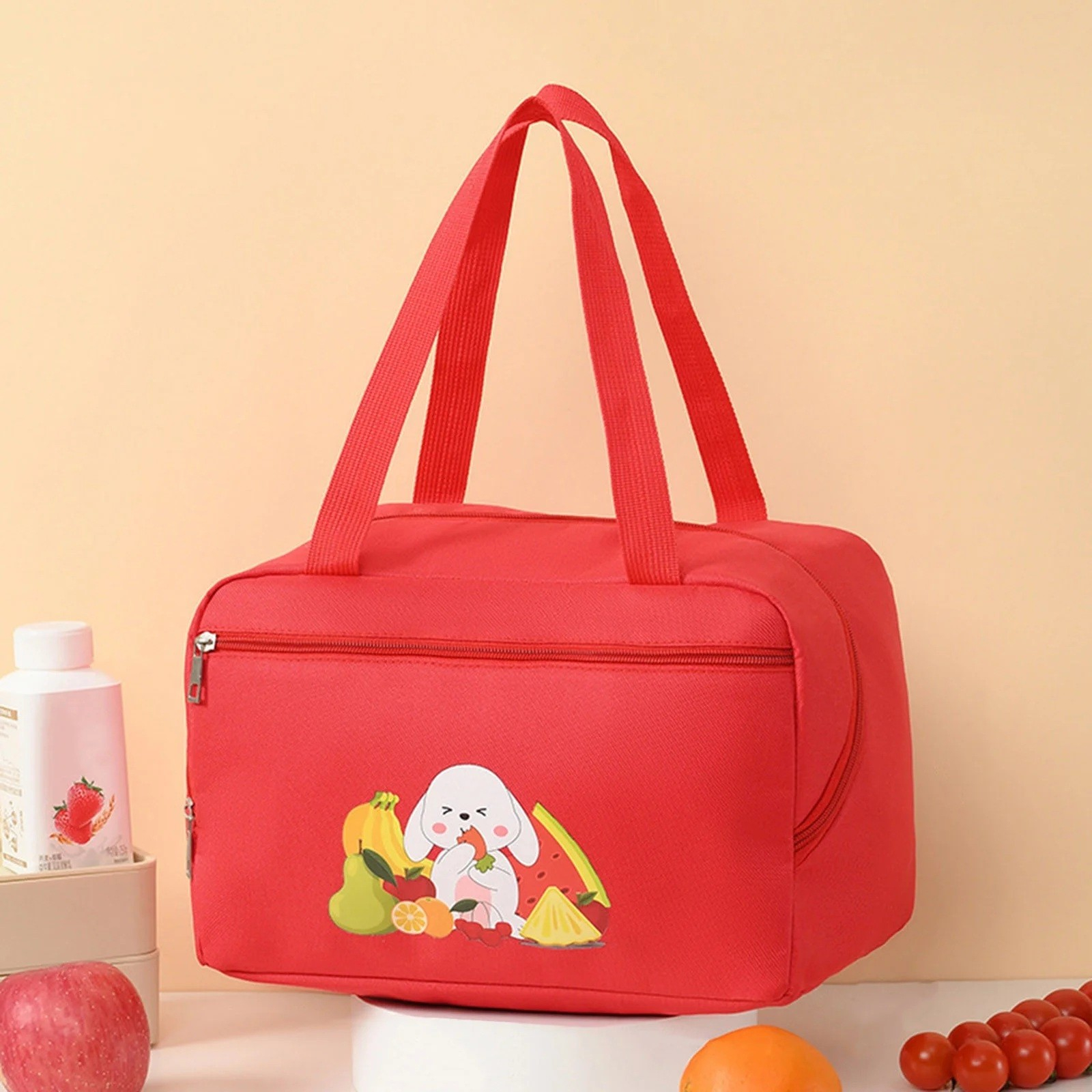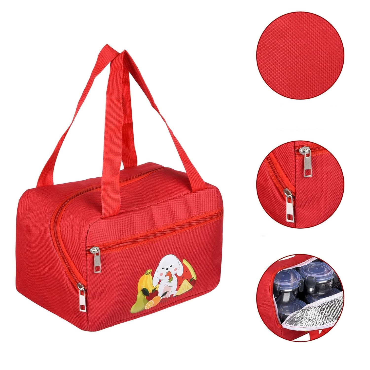 Geantă Termo-Izolantă , cu Compartimente pentru Telefon și Tacâmuri, 30 x 21 x 20 cm, Design Iepuraș, Roșu
