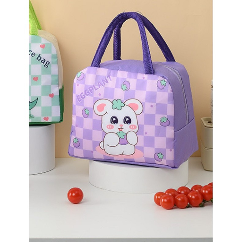 Geanta Termoizolanta pentru Copii, , 23x13x19 cm, Model Imprimeu Iepuras, din Folie de Aluminiu si Panza Oxford, Mov