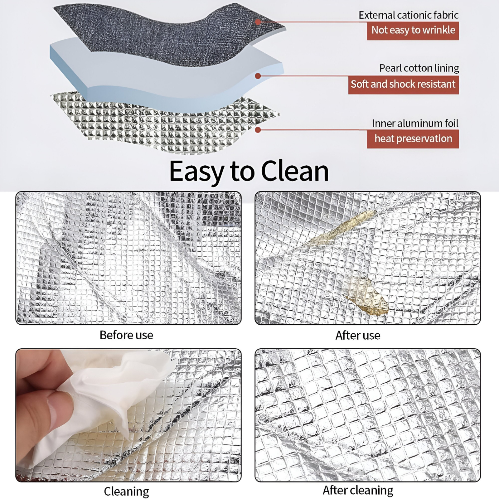 Construită din aluminiu de înaltă calitate, geanta oferă o rezistență excepțională și este ușor de curățat. Materialul termoizolant permite menținerea temperaturilor constante, fie că este vorba de alimente reci, fie de cele calde. Astfel, puteți avea încredere că mâncarea dumneavoastră va rămâne proaspătă și delicioasă pe parcursul întregii zile.