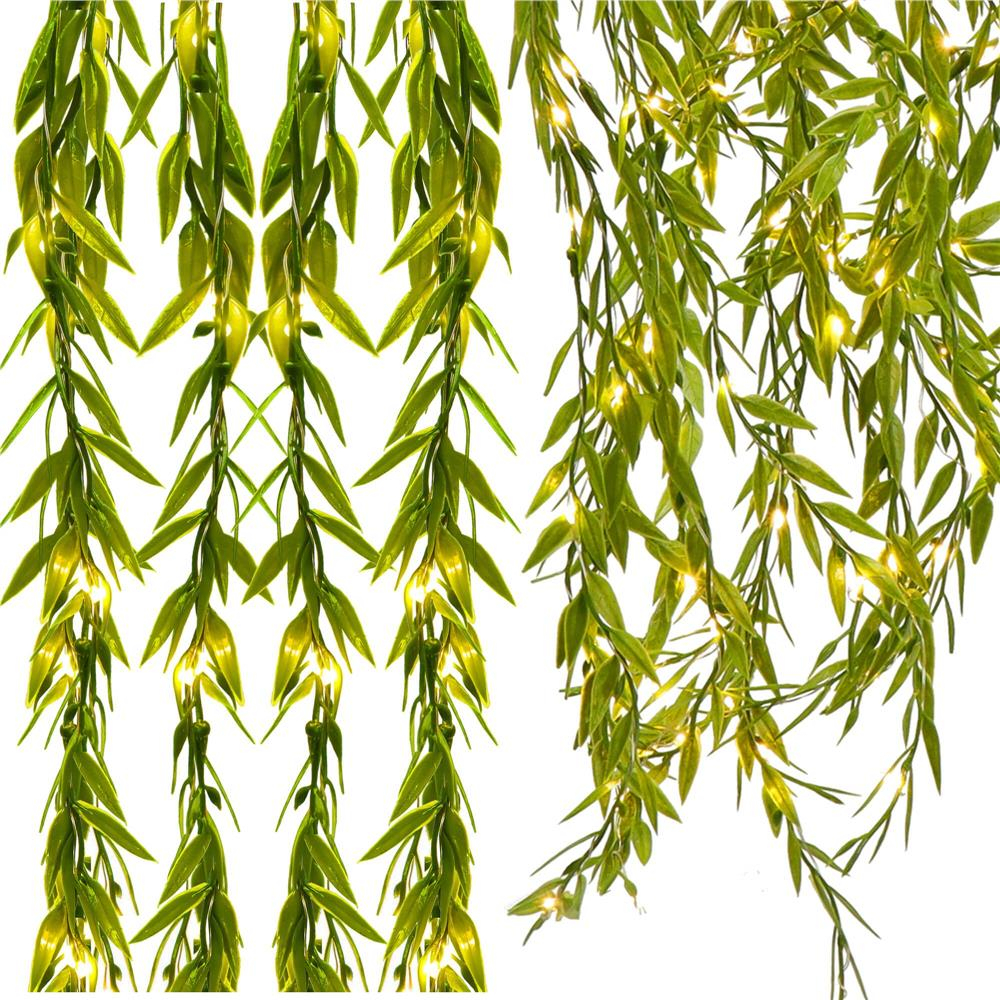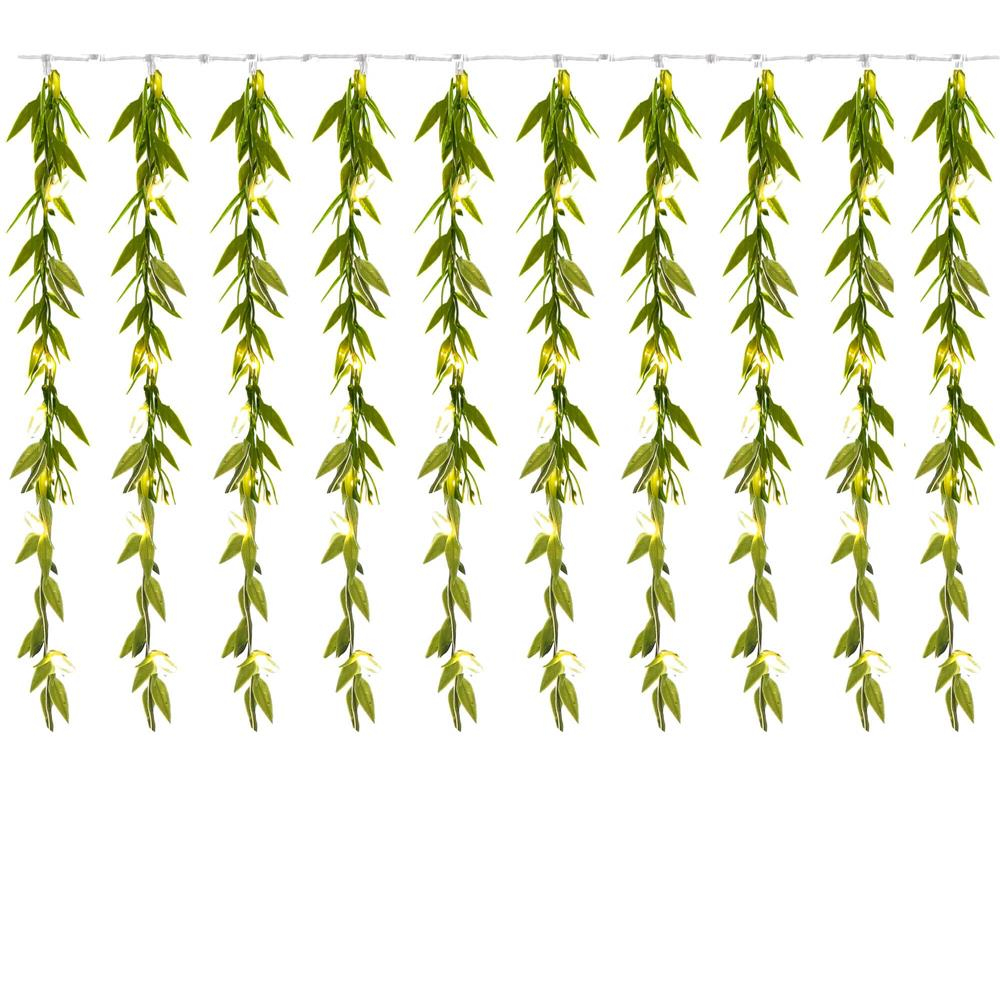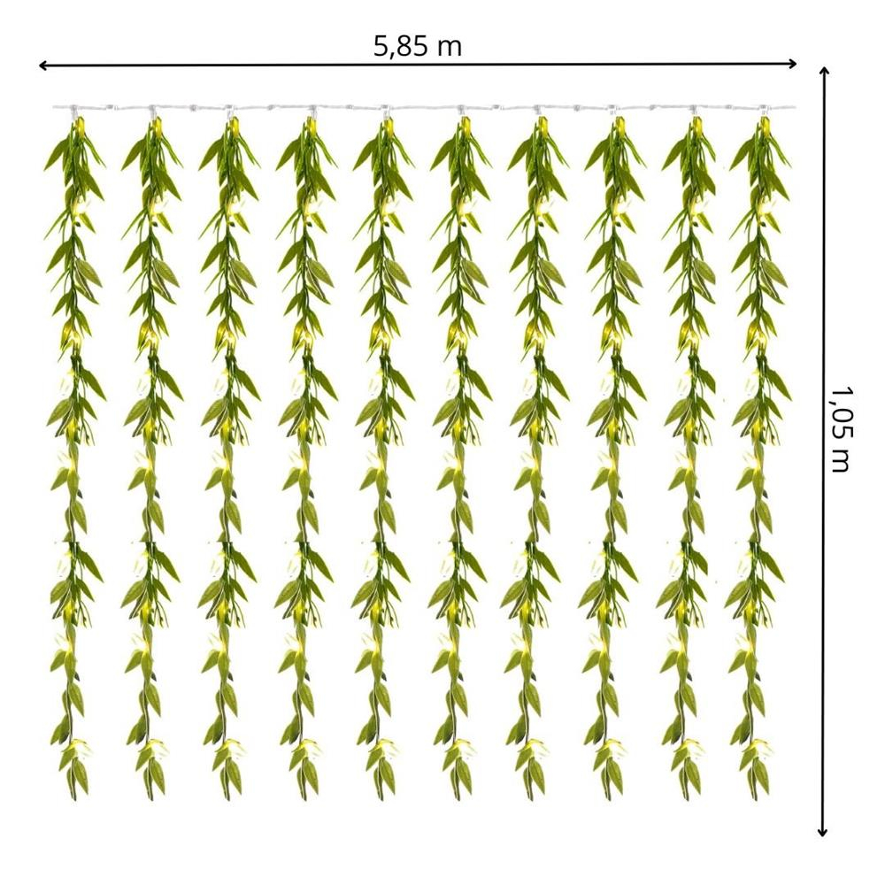 Ghirlanda luminoasa tip perdea de frunze artificiale, 285x105cm, 200 LED-uri, alb cald