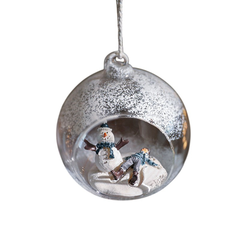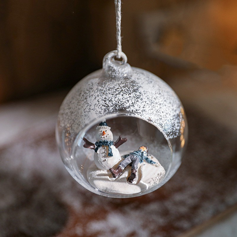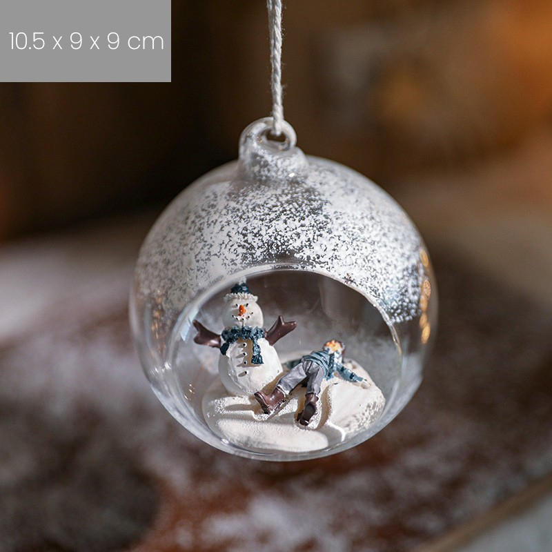 Adauga un strop de magie sarbatorilor cu Globul pentru Bradul de Craciun, , Model Om de Zapada si Omulet. Realizat din sticla transparenta de inalta calitate, acest glob semi-deschis surprinde un peisaj de iarna de poveste, cu un om de zapada si un mic omulet ce se bucura de zapada. Designul detaliat si efectul de ninsoare la exterior ii confera un aspect elegant si autentic.