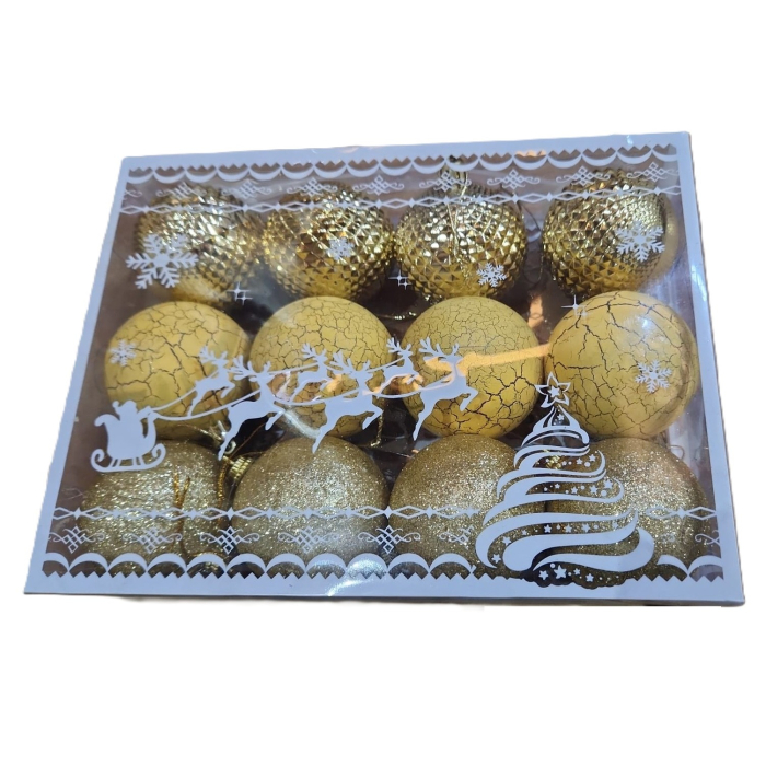 Împodobește bradul cu eleganță și strălucire folosind setul de 12 globuri de Crăciun . Realizate din plastic rezistent, globurile combină finisajul lucios, mat și decorul cu glitter, creând un efect vizual spectaculos. Perfecte pentru decorul festiv al bradului, acestea vin cu ață de agățat inclusă și ambalate într-o cutie cu motiv de Crăciun, gata pentru depozitare sau oferire cadou.