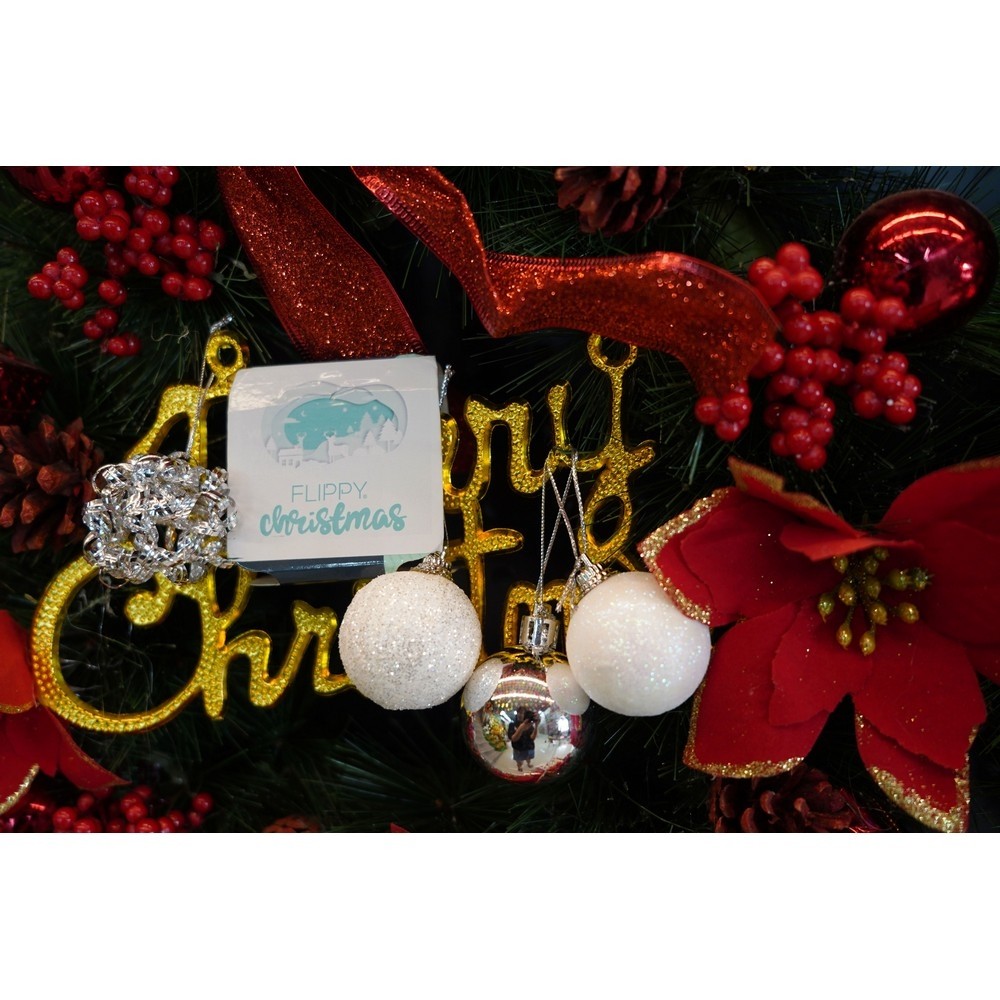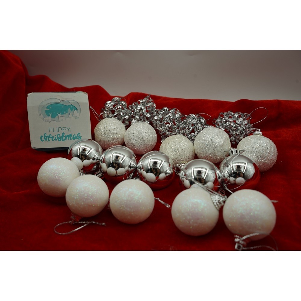Set de 20 ornamente de brad, , de tip Glob, Alb/ Argintiu, din polistiren, cu finisaj sclipitor , cutie 4 cm adancime x 20 cm lungime x 16 cm inaltime