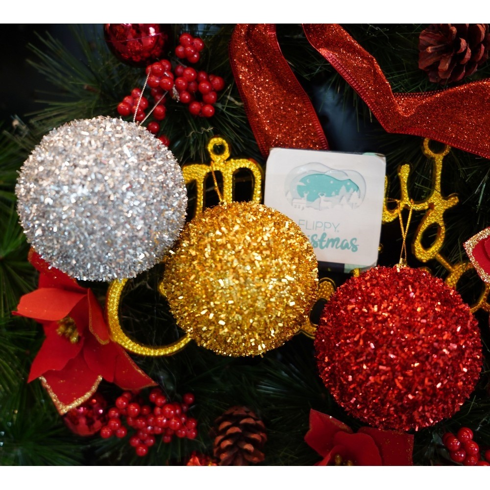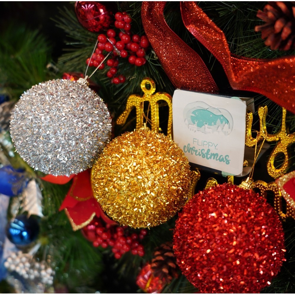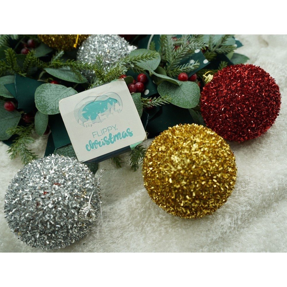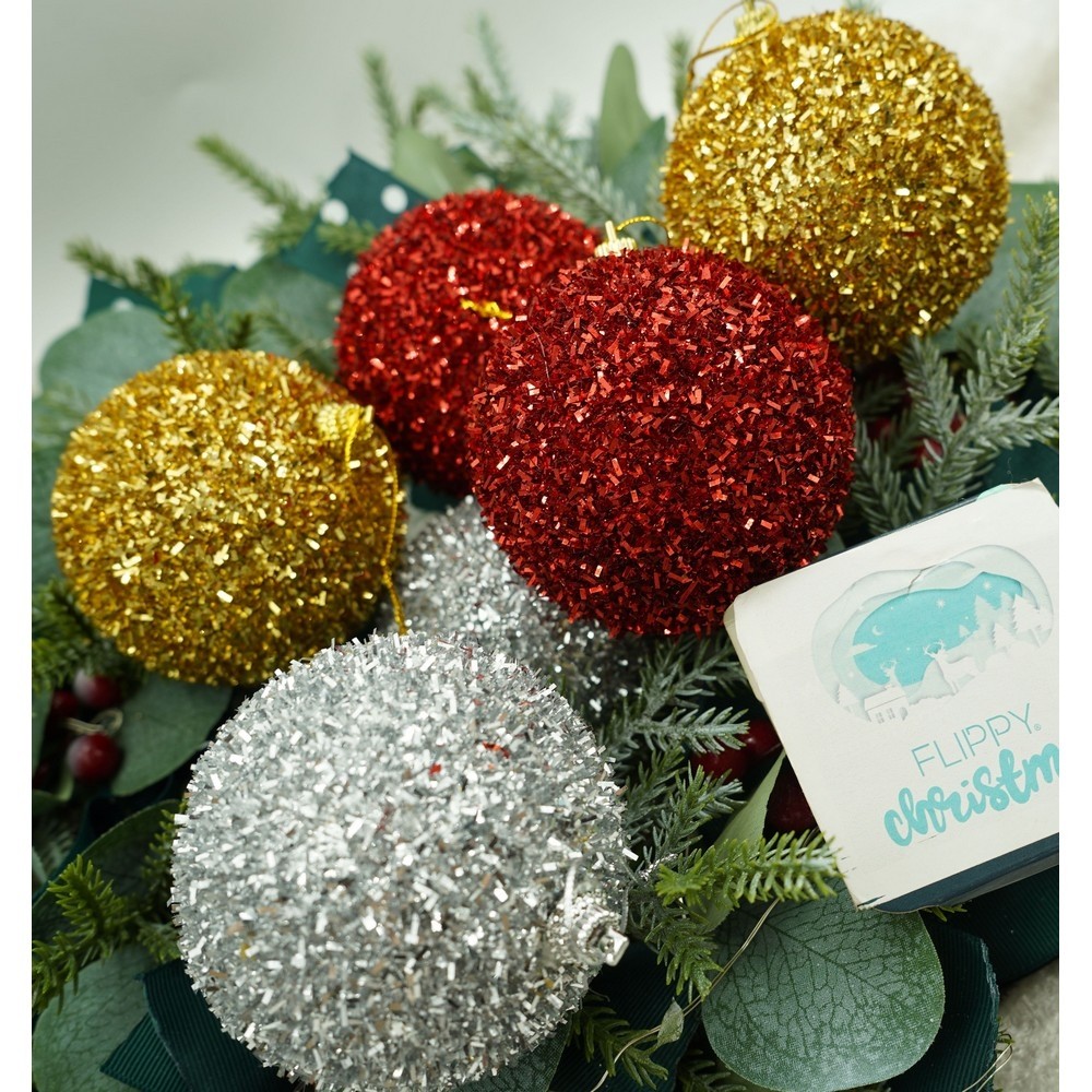 Set de 6 ornamente de brad, , de tip Glob, Multicolor, cu ø de 8 cm, din polistiren, cu finisaj sclipitor , cutie 16 cm inaltime x 24 cm lungime x 8 cm adancime