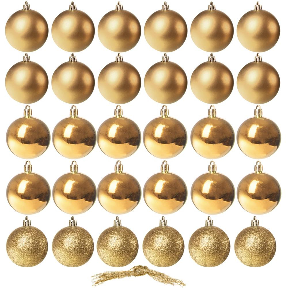 Set globuri de Craciun, 30 bucati, 3 modele, 3cm, auriu