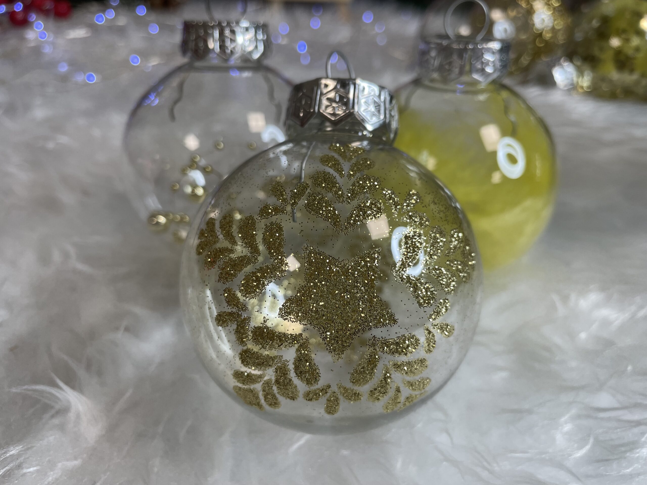 Culoare: transparent cu interior auriu si galben Material: plastic Cantitate: 30 de bucati de globulete Desene: modele: 5 modele diferite Incasabil, snur pentru agatare Setul...