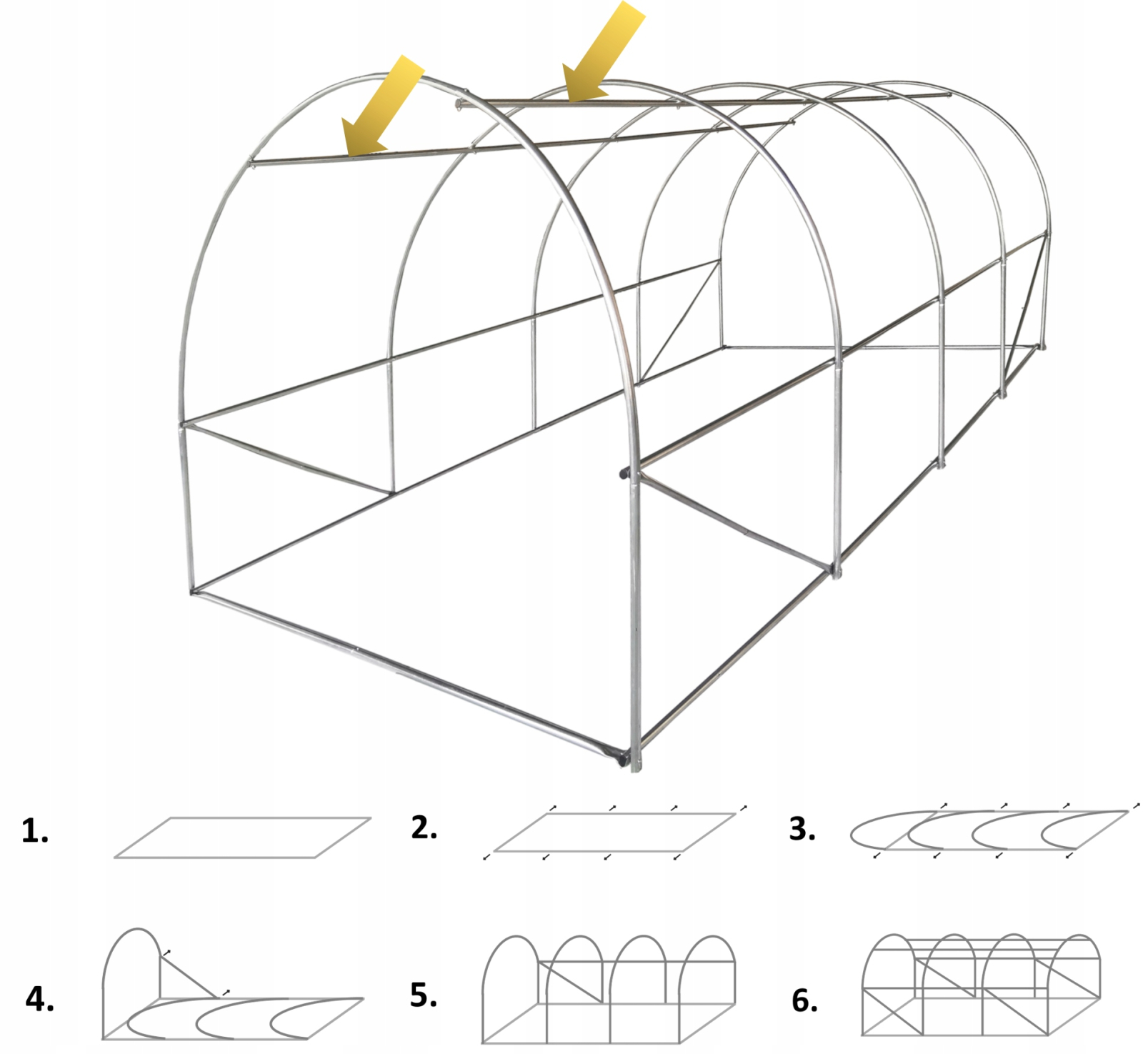 O sera de gradina complet va proteja in mod ideal plantele, culturile de conditiile meteorologice nefavorabile sau de daunatori. Este o propunere senzationala pentru pasionatii de cultivare in gradina si in solarii. Un tunel de folie va accelera si va imbunatati randamentul culturilor si va crea microclimatul potrivit pentru culturile si recoltele dumneavoastra. PARAMETRII: Dimensiunile tunelului: 4m x 2,5m x 2m (+/- 5cm) Dimensiunea usii: 80x180cm Material : folie PE 140g/m² cu filtru UV4 Cadru: 25x0.7mm Plasa PP verde incorporata in pelicula de acoperire protejeaza impotriva ruperii 1 usa cu fermoar 9 geamuri rulante Iesire complet blocabila Fereastra superioara suplimentara Cadru metalic galvanizat Flansa de pamant pentru saparea in pamant Ferestre cu velcro cu plase de tantari Kit de fixare la sol Rezistent la intemperii Iesire complet blocabila! Tunelul are o intrare complet inchisa, inclusiv pragul! In tunelurile conventionale, chiar si atunci cand sunt inchise, ramane un spatiu ingust sub usa. Aici intra melcii cei mai mari daunatori ai culturilor noastre de sera. Gulerul de pamant este sapat in jurul serei.Puteti sa inchideti bine tunelul si sa va bucurati de culturile dumneavoastra fara a folosi preparate chimice Fereastra superioara suplimentara! Tunelul este echipat cu o fereastra superioara suplimentara pe peretele din spate. Acesta asigura o ventilatie importanta. In tunelurile traditionale, temperatura devine foarte ridicata in timpul caldurii de vara, ceea ce face ca plantele, cum ar fi rosiile sau castravetii, sa se ofileasca. Acest lucru se intampla in principal in partile superioare ale plantelor.O fereastra suplimentara situata sub bolta tunelului ventileaza foarte bine interiorul serei.  Flansa inferioara pentru acoperirea cu pamant Impiedica patrunderea daunatorilor nedorite si stabilizeaza structura.  2 tuburi suplimentare pentru plante cataratoare Tunelurile au o functie de suspendare a coardelor pentru plante precum rosiile, mazarea sau sparanghelul.  Folie PE 140g/m² cu filtru UV4 Plasa PP verde fuzionata in pelicula de acoperire protejeaza impotriva ruperiiCadru stabil conectat prin suruburi.Zincat cu precizie cu dopuri de plasticDiametrul tubului: 25mmGrosimea tubului: 0.7mm  Usi cu inchidere cu fermoar Permite accesul rapid si usor la interiorul tuneluluiUsi si ferestre rulanteMontat pe o curea robusta. Ferestrele sunt prevazute cu plase de tantari.  Set de cuie Consolideaza constructia tunelului.  Cablu atasat cu curele direct la cadru INSTRUCTIUNI DE INSTALARE: Tunelurile noastre sunt echipate cu 2 tuburi suplimentare in partea superioara, care sunt responsabile pentru stabilitate si permit legarea sforilor pentru plantele cataratoare.Pasul 1. Asezati elementele de baza asa cum este descris in instructiunile de utilizarePasul 2. Montati suruburile in gauri si strangeti-le usor, astfel incat sa nu opuna rezistenta. Nu le strangeti completPasul 3: Uniti tuburile in arcuri. Insurubati piesele finisate cu suruburile instalate anterior la pasul "2".Pasul 4. Ridicati primul arc in pozitie verticala si blocati-l cu tubul inclinat.Pasul 5 Ridicati toate arcadele, conectandu-le impreuna cu bara transversala superioara. Inca nu strangeti toate suruburile pana la capat.Pasul 6 Asamblati barele transversale si tuburile diagonale ramase. Cand toate piesele sunt asamblate, puteti strange suruburile pana la capat. Asezati folia si ancorati tunelul in pamant.In cazul in care exista rafale puternice de vant in zona dvs., este indicat sa o fixati cu ancore suplimentare la sol, cum ar fi tije metalice.