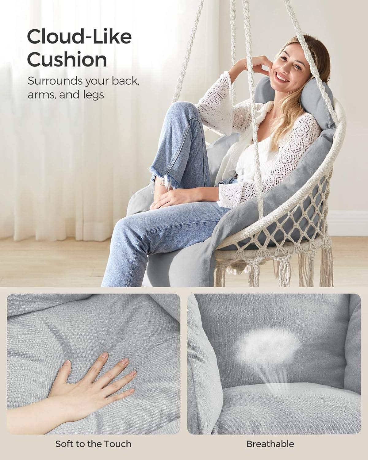 SONGMICS Scaun rotund tip leagan suspendat cu perna, pentru casa sau gradina, gri