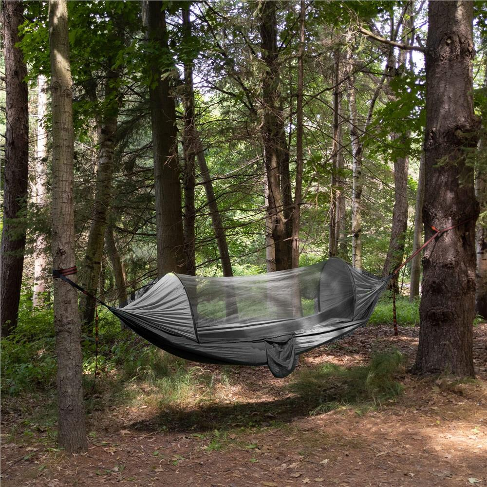Hamac dublu din material parasuta 140x260cm, cu plasa de tantari si geanta transport, gri