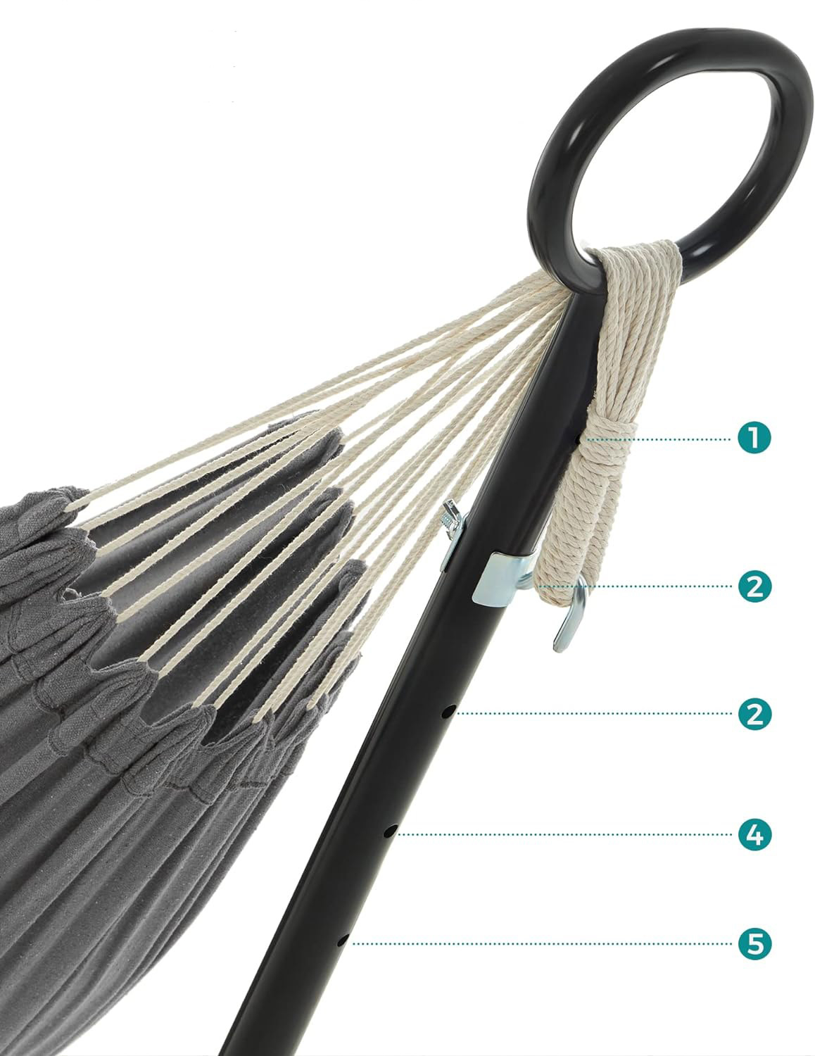 SONGMICS Hamac cu cadru metalic, reglabil la 5 inaltimi, maxim 240 kg, 300x90x95cm, gri