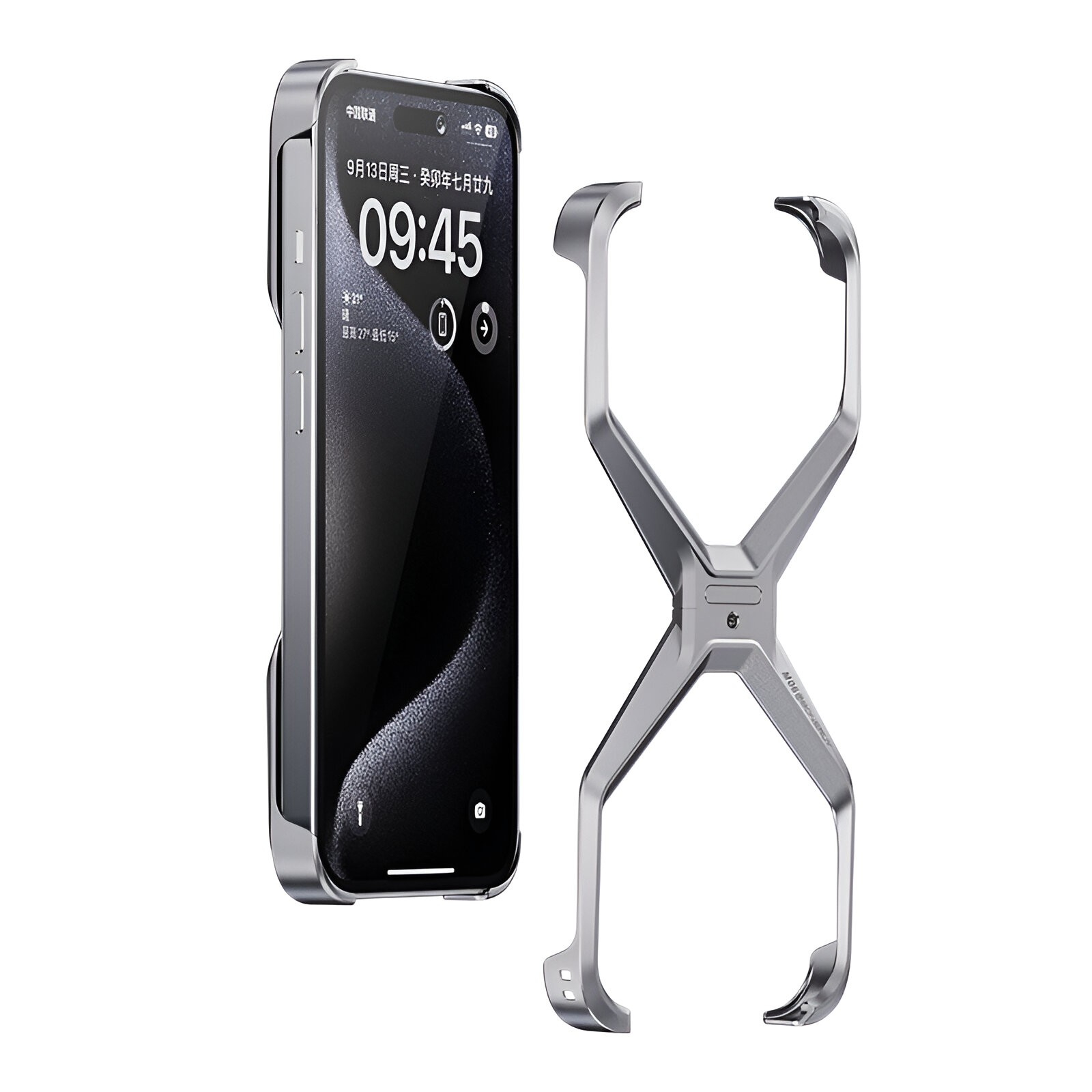 Husa Armor X Compatibila cu iPhone 15 Pro Max, , Aliaj de Aluminiu, Antisoc, Antizgarieturi, Impermeabila, Margini cu 2 Straturi, Aderent, Montare Usoara, Surubelnita Inclusa, Gri Metalizat