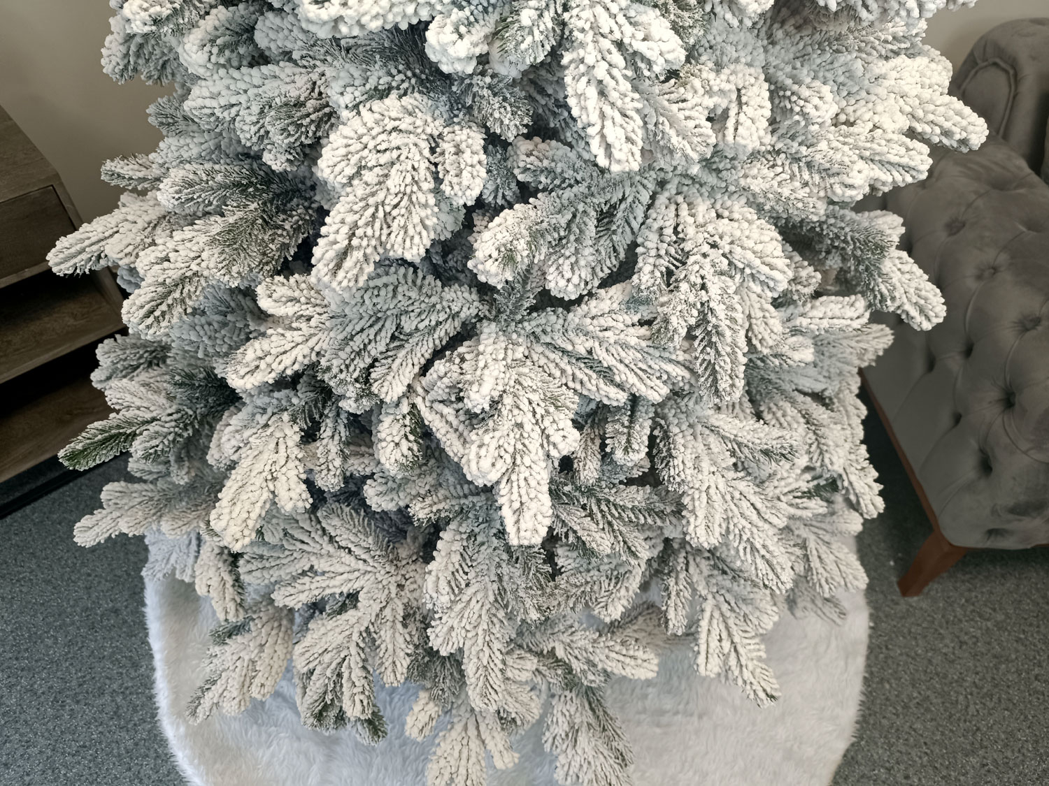 Imagine reala de prezentare pentru modelul Kovalivska nins, varianta 210cm Acesti brazi au un aspect ultra-realist si sunt greu de distins in comparatie cu cei...