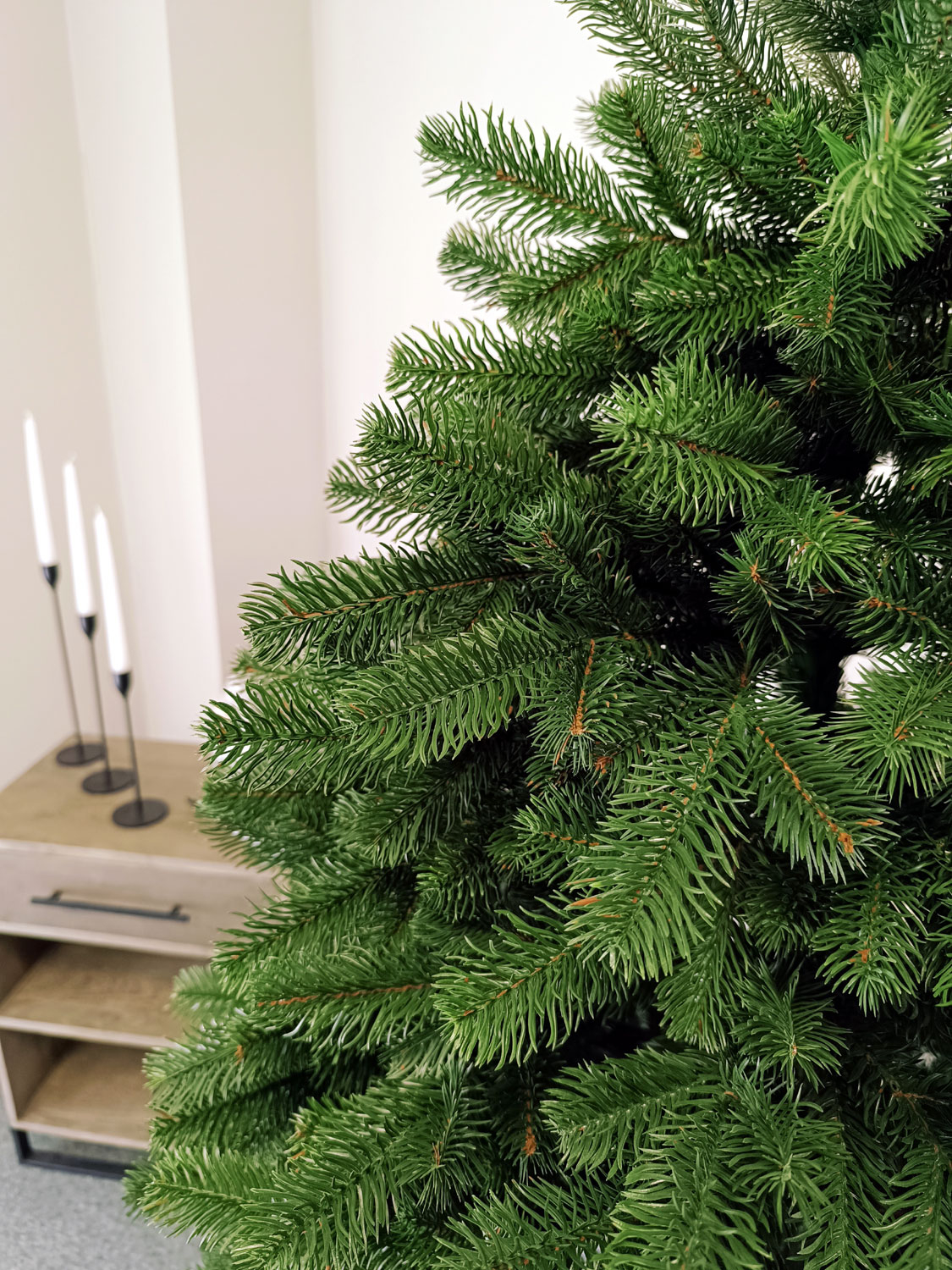 Imagine reala de prezentare pentru modelul Kovalivska verde, varianta 180cm Acesti brazi au un aspect ultra-realist si sunt greu de distins in comparatie cu cei...