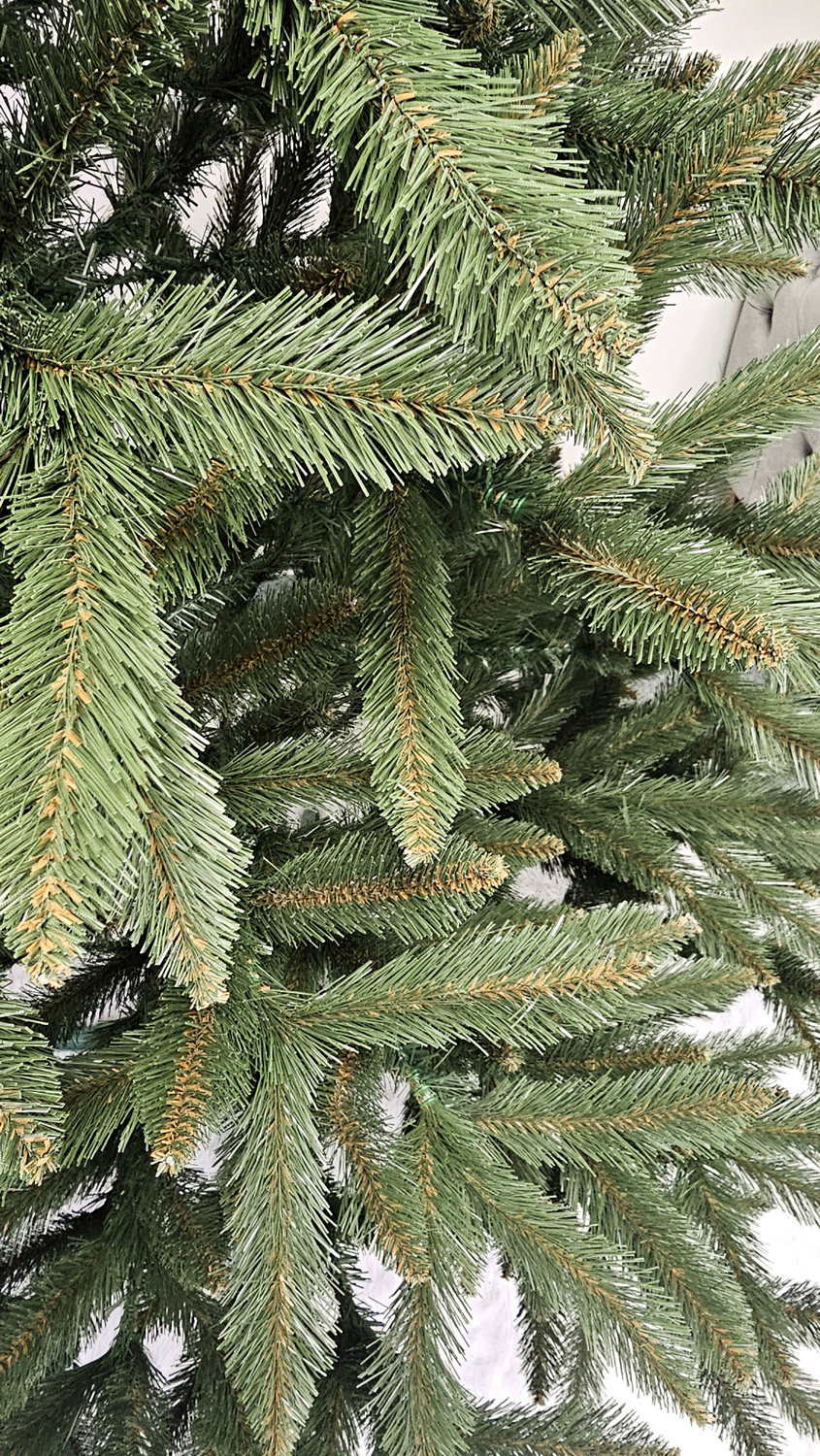 Imagine reala de prezentare pentru modelul Victoria verde, varianta 200cm PARAMETRII: - Inaltimea totala a bradului (dimensiune masurata de la podea pana in varf, cu tot cu suport): 200cm - Diametrul (latimea la baza in cel mai lat punct): 124cm - Numarul total al ramificatiilor: 582 dintre care:- Crengute 2D, material PVC: -- Crengute 3D, material PE: 582- Suport inclus: metal- Zapada: NU- Alte decoratiuni: -- Greutate (fara ambalaj): 8.7kg- Dimensiune ambalaj carton: 20 x 20 x 120cm BRAD DE CRACIUN UNIC PENTRU CRACIUN UNIC Ce poate fi mai fermecator decat atmosfera unica a Craciunului? Si probabil ca niciunul dintre noi nu se indoieste ca un brad splendid impodobit este cel mai important element care construieste aceasta atmosfera magica de Craciun. La urma urmei, ritualul anual al impodobirii in familie a bradului de Craciun este unul dintre cele mai de neuitat momente, evocand multe amintiri frumoase. Bradul de Craciun prezentat va reflecta atmosfera minunata a Craciunului intr-un mod unic, si in acelasi timp atat de cunoscut si de indragit, subliniindu-i caldura si atmosfera de familie. DESCOPERA AVANTAJELE POMULUI NOSTRU DE CRACIUN – manopera precisa, imbinand soliditatea cu eleganta– densitate mare de ramuri si ace– distributie uniforma a acelor pe toata ramura – fara goluri– spatiu liber sub etajul inferior pentru cadouri– posibilitate de modelare a crengutelor in mai multe moduri– varietatea si realismul capetelor de crenguta– culoarea acelor imitand perfect acele naturale– diferentierea ramurilor – in functie de nivelul de inaltime– grosimea si durabilitatea firelor– fiabilitatea intregii structuri – arborele este aproape imposibil de distins de brazii naturali Cu bradul Christmas Deluxe by Sersimo® – un element inseparabil al Craciunului – veti petrece aceasta perioada magica de iarna intr-o aura de bucurie si caldura. Ganditi-va doar cat de frumos vor arata decoratiunile – stralucitoare, presarate cu sclipici, incalzind interiorul. Chiar si oamenii care nu impartasesc entuziasmul de Craciun recunosc ca un brad de Craciun impodobit frumos creeaza o atmosfera aparte. Cel mai mare avantaj al bradului nostru de Craciun este numarul mare de ramuri dens aranjate. Datorita densitatii si elegantei sale captivante, nu necesita prezenta a numeroase decoratiuni, fiind cu adevarat un decor grozav al oricarui interior! Etajul cel mai de jos al pomului de Craciun este la inaltimea potrivita, astfel incat sa puteti pune cu usurinta cadourile de Craciun sub el.Crengile pot fi indoite cu usurinta in diferite directii pentru a modela diferitele ramuri ale pomului si a le da forme diferite. Crengutele individuale au finaluri realiste si variate, iar niciuna nu este taiata intr-un mod artificial si inestetic. Culoarea lor intr-un mod extrem de realist imita culoarea reala a coniferelor si nu se estompeaza in timp. Sarma ascunsa cu grija nu se vede prin ace si, in acelasi timp, este suficient de groasa si rezistenta pentru ca bradul sa va serveasca ani de zile! Ace din folie PVC, puternice si durabile, sunt in acelasi timp extrem de placute la atingere. Deoarece bradul de Craciun – spre deosebire de copacii adevarati – nu ii pierde, nu va fi nevoie sa aspirati camera in mod regulat. Mai mult decat atat, acele sunt distribuite uniform pe toata lungimea ramurii, garantand astfel un efect vizual de densitate, fara goluri. Design exclusiv realizat de SERSIMO, fabricat in Ucraina