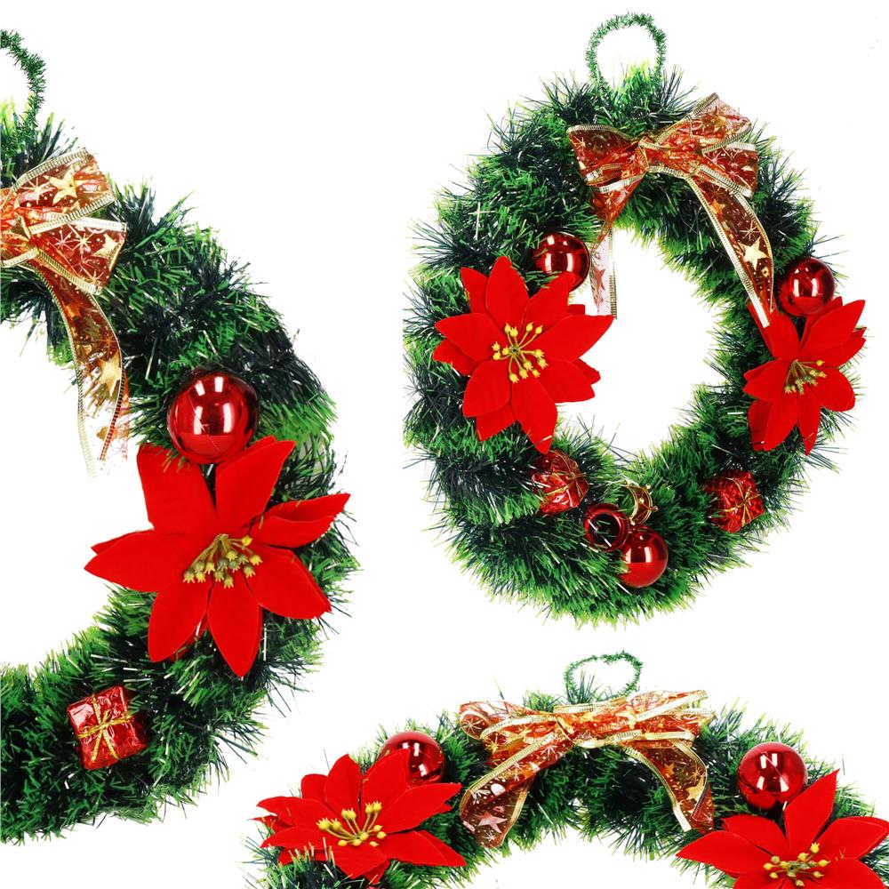 CORONITA DECORATIVA DE CRACIUN PENTRU USA SAU PERETE Culoare: verde, rosu, auriu Materialul acelor: PVC Latime: aprox. 8 cm Diametrul coroanei: aproximativ 35 cm. Material:...