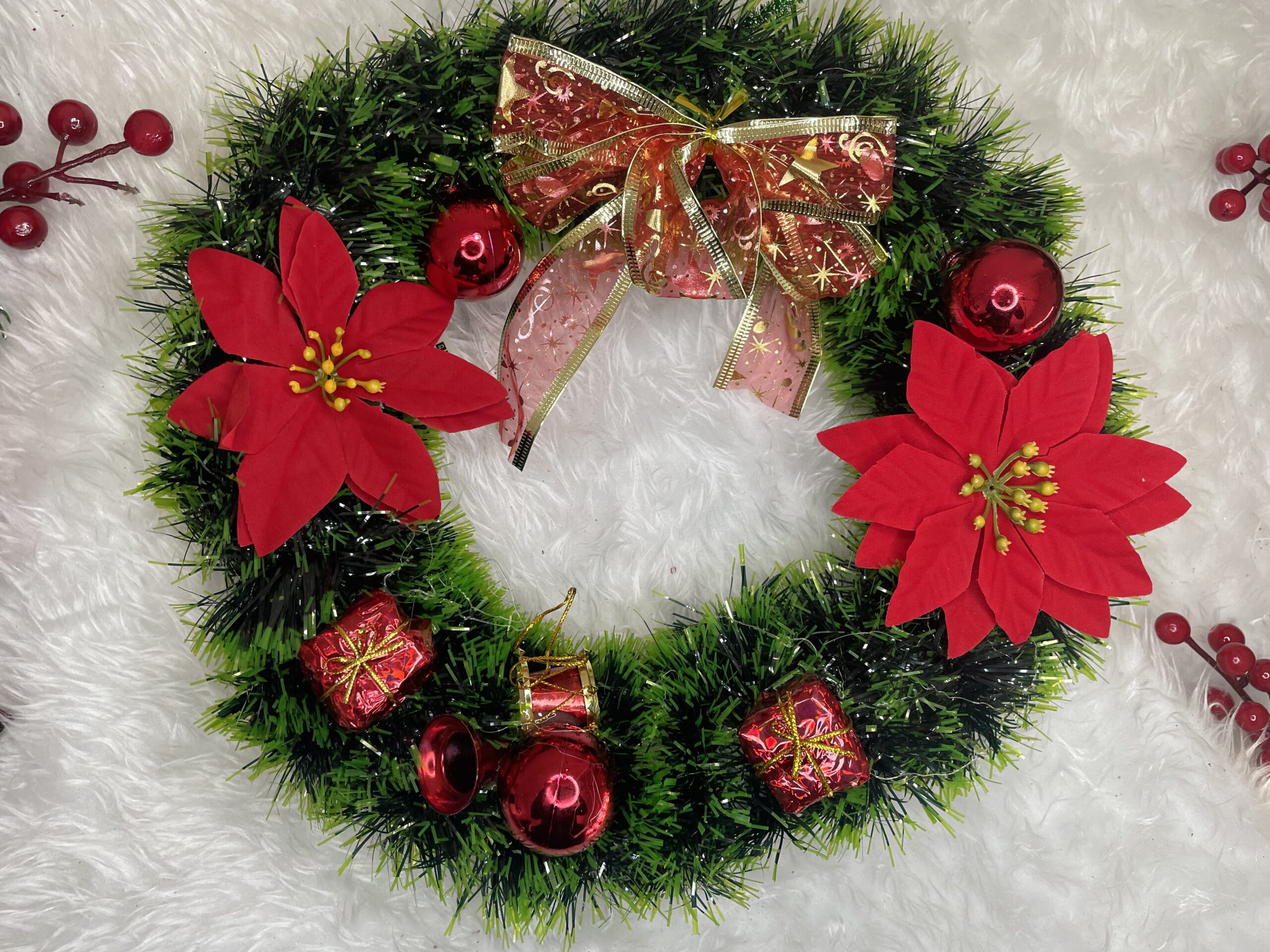 Coronita pentru Craciun, 35 cm, din brad artificial, cu decoratiuni, verde
