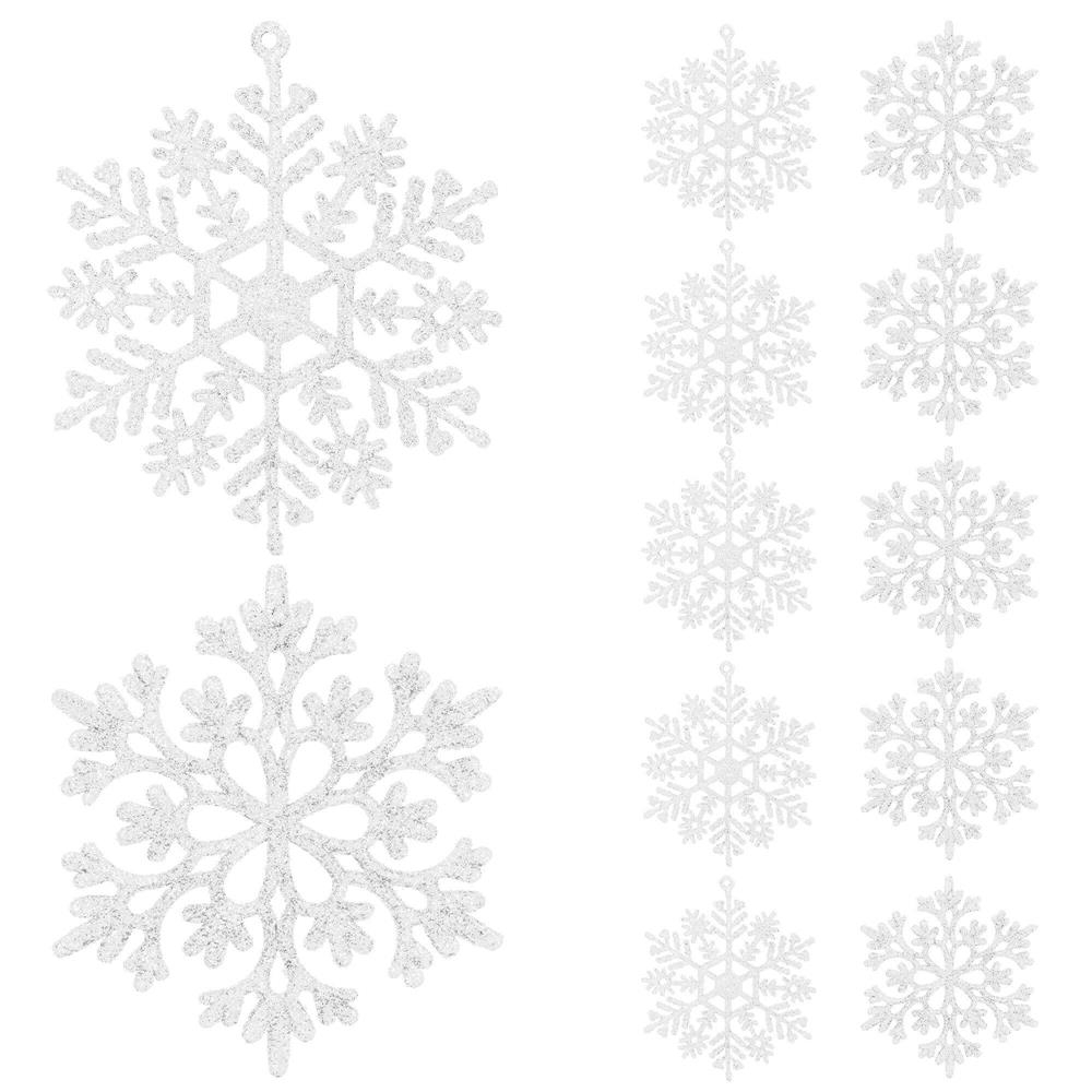 Material: PP Diametru: 9, 10 cm Cantitate in pachet: 12 bucati Numar de modele: 2 Finisaj: sclipici Culoare alba In plus: sfori pentru agatat Craciunul,...