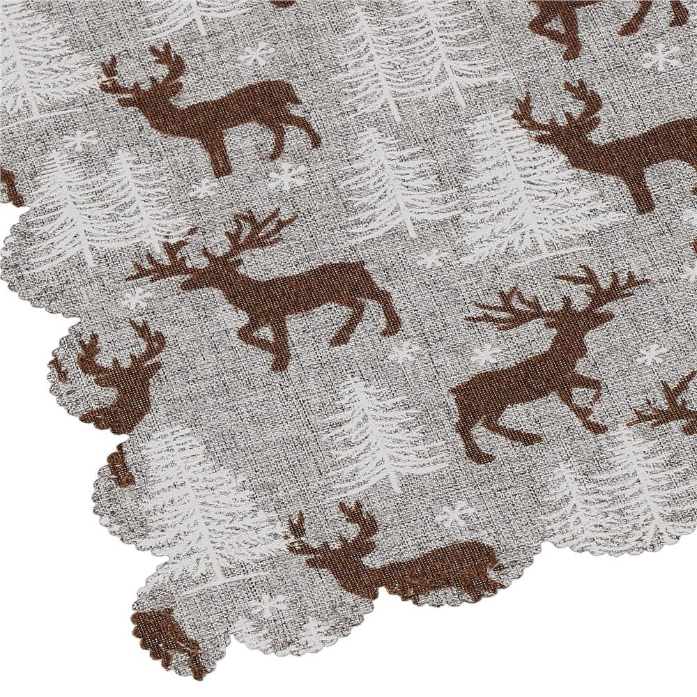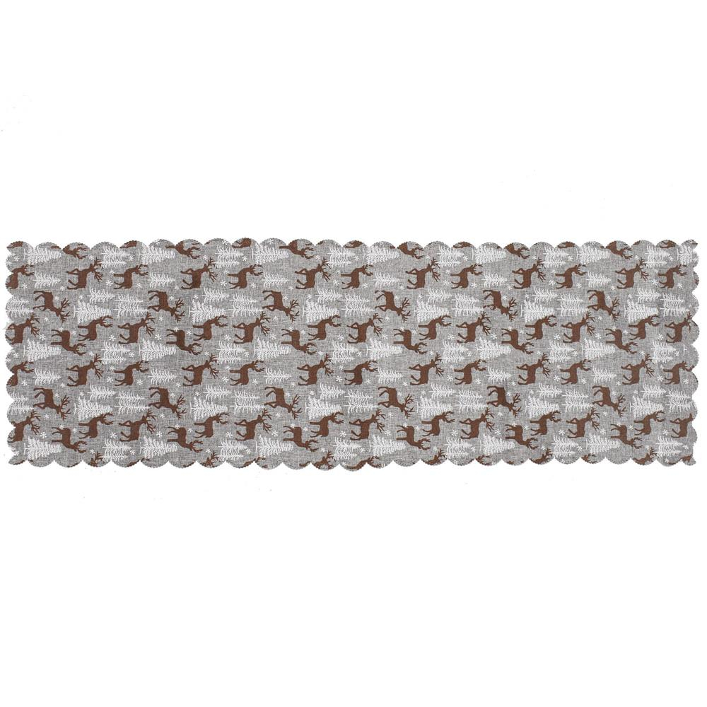 Fata de masa pentru decor, cu motive de Craciun, din stofa, 35x186cm, gri