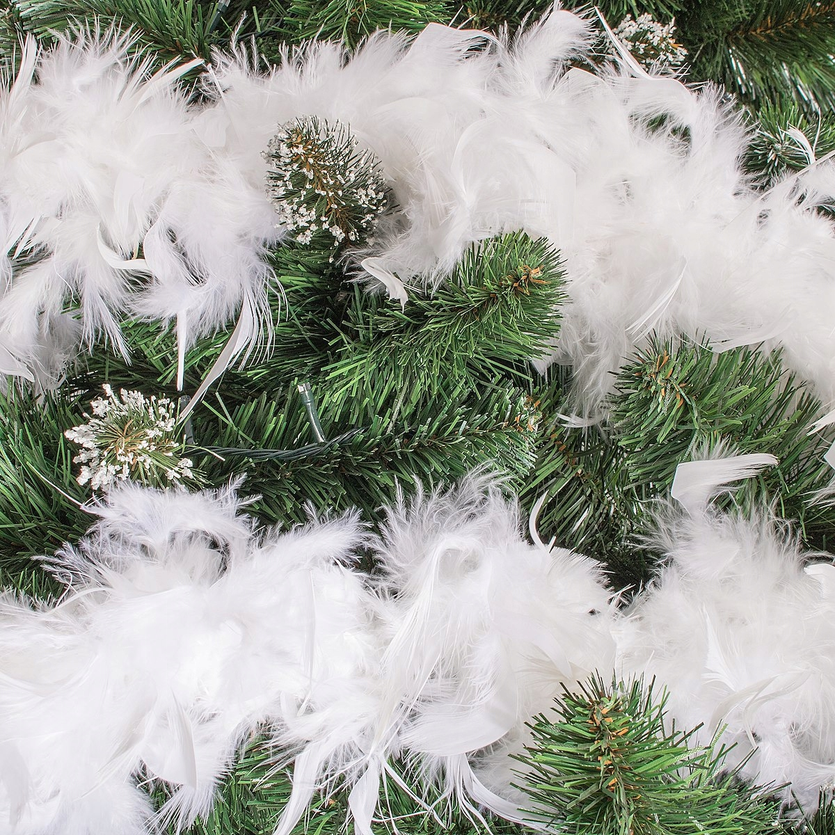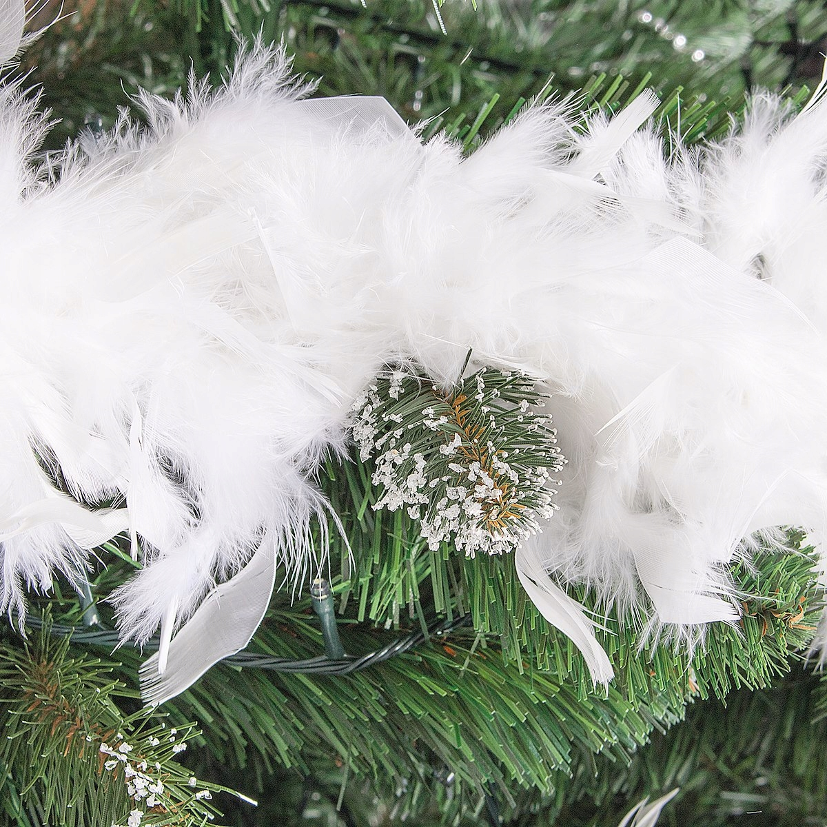 Ghirlanda pentru decor sau bradul de Craciun, model puf si pene, alba, 400cm
