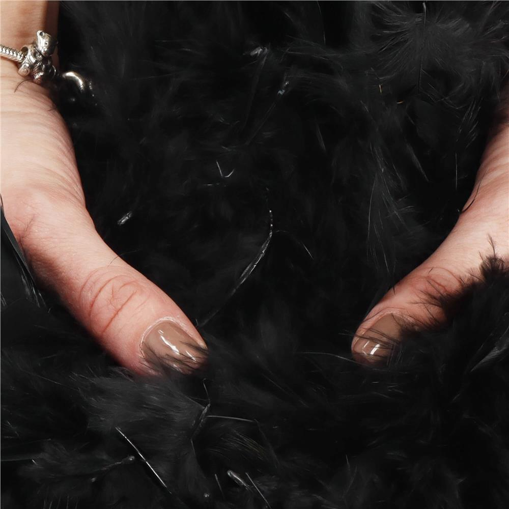 Ghirlanda pentru decor sau bradul de Craciun, model puf si pene, negru, 180cm