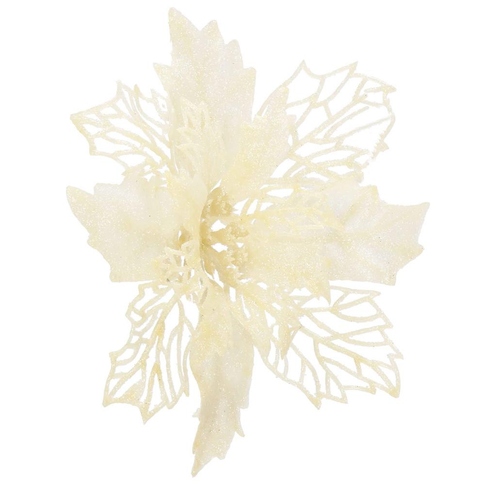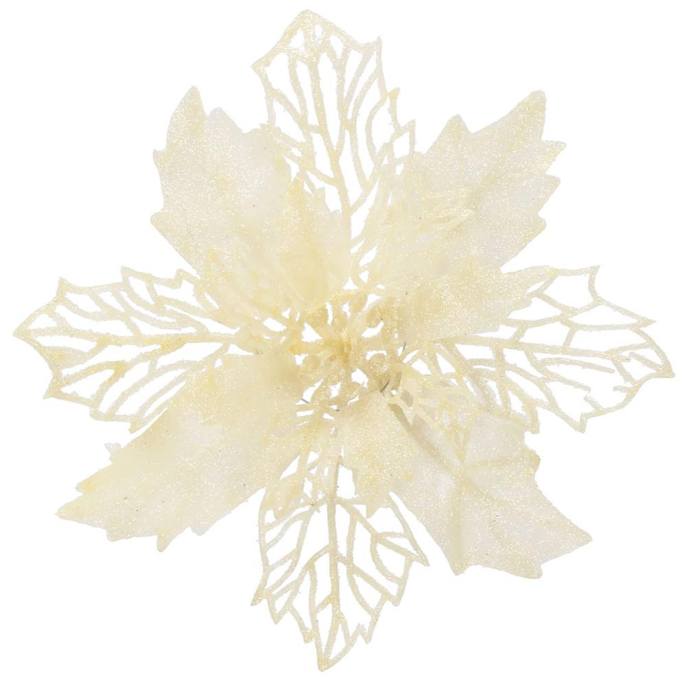 Set 10 ornamente pentru bradul de Craciun, stea Poinsettia, 16cm, crem