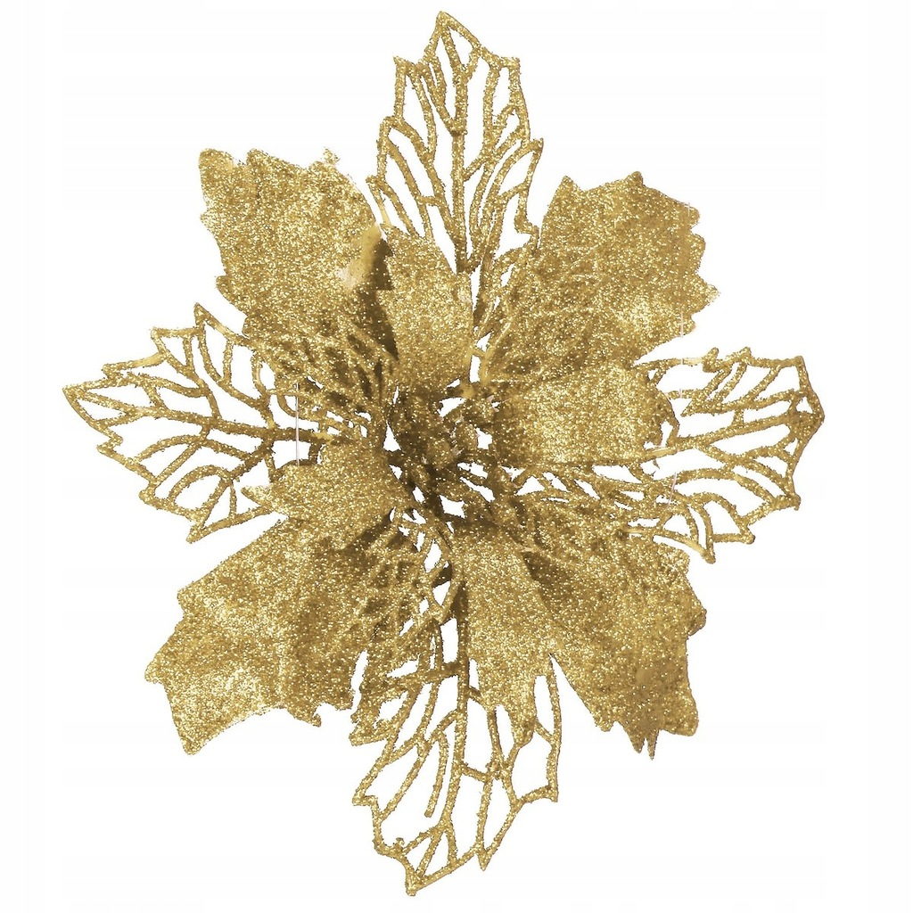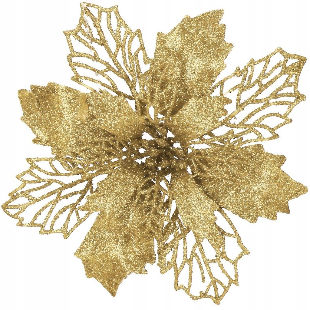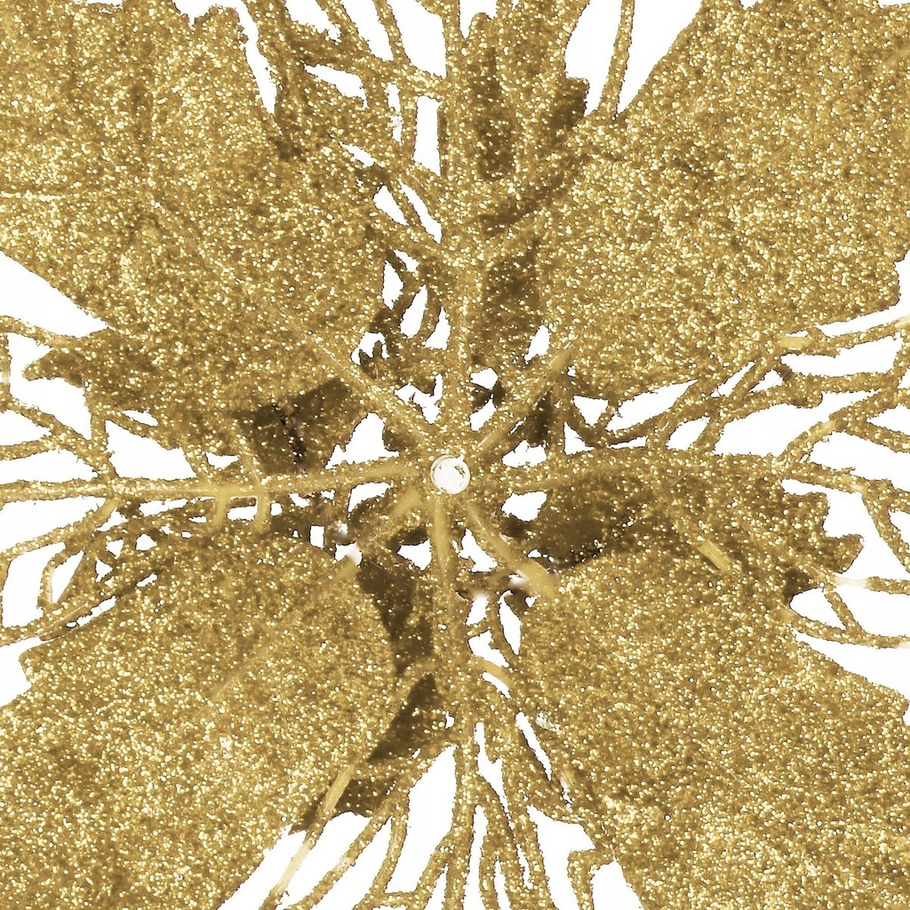 Set 10 ornamente pentru bradul de Craciun, stea Poinsettia, 16cm, galben auriu