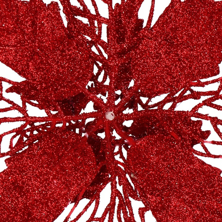 Set 10 ornamente pentru bradul de Craciun, stea Poinsettia, 16cm, visiniu