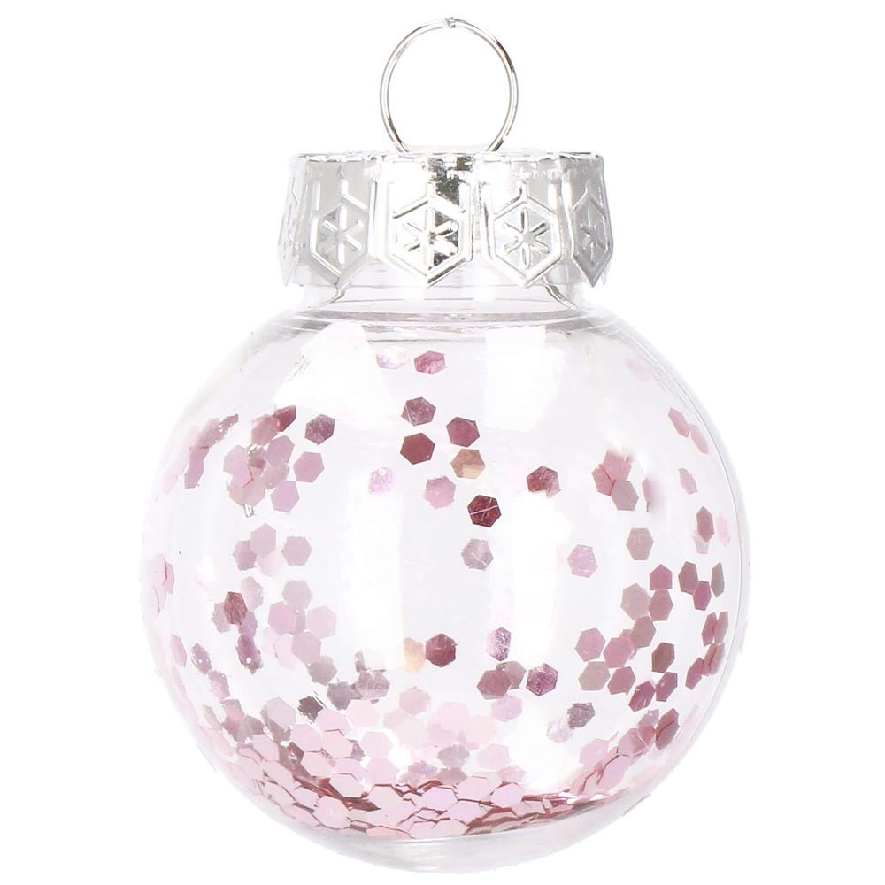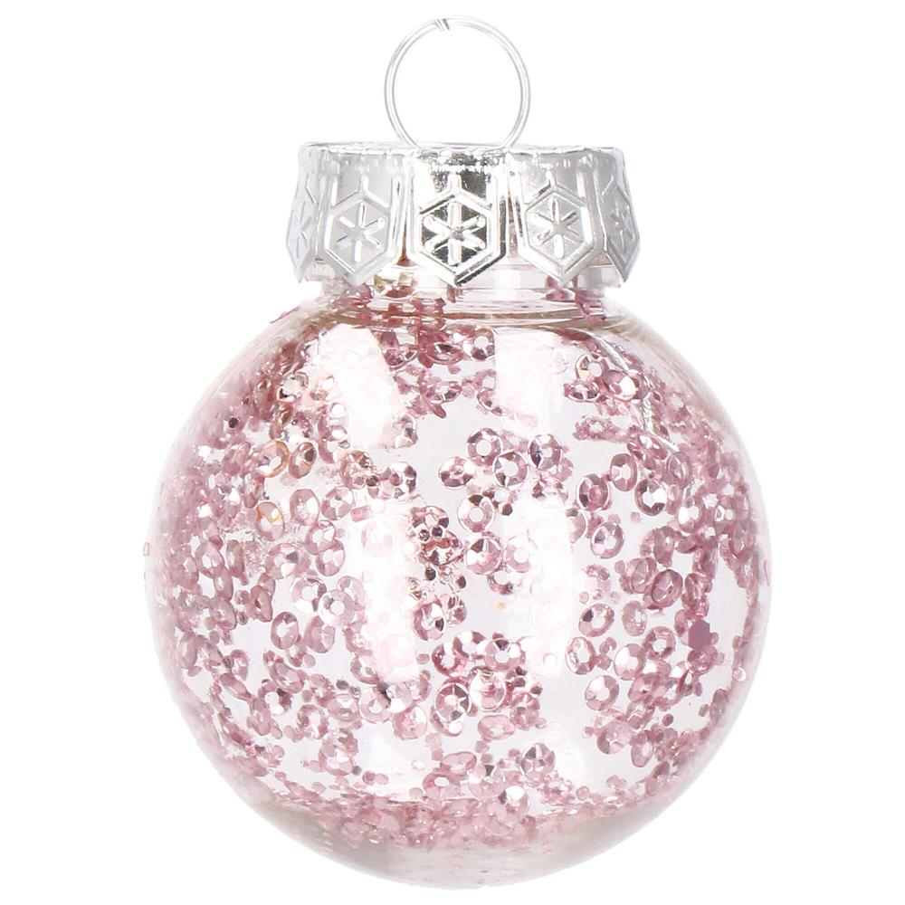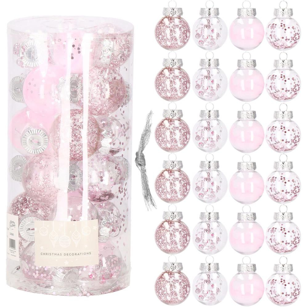 Set globuri de Craciun Inedit, 24 bucati, 5cm, transparente si roz pal