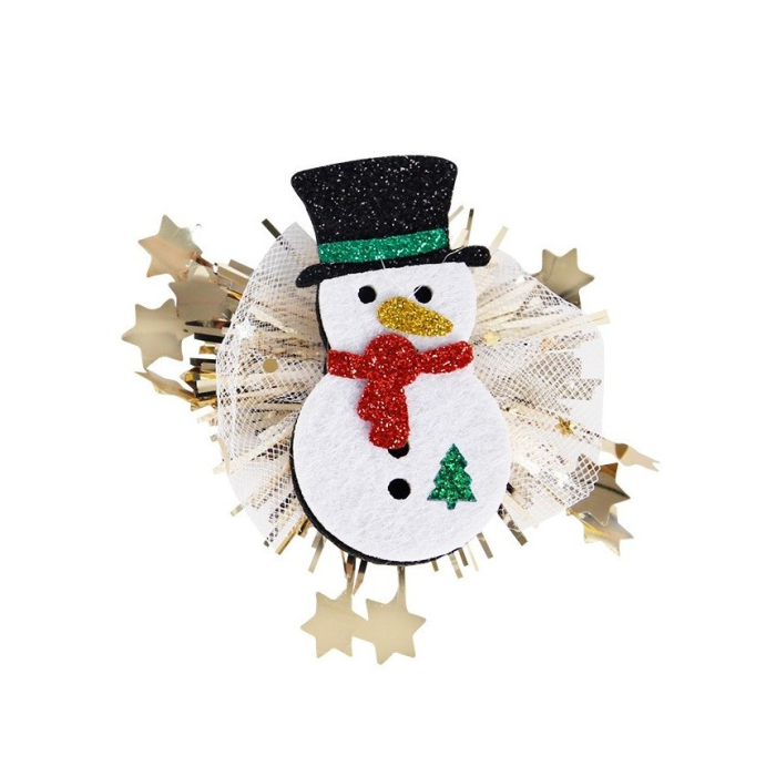 Agrafă de Păr , Tematică Crăciun, Model Om de Zăpadă, 8.5 x 8.8 cm, Multicolor