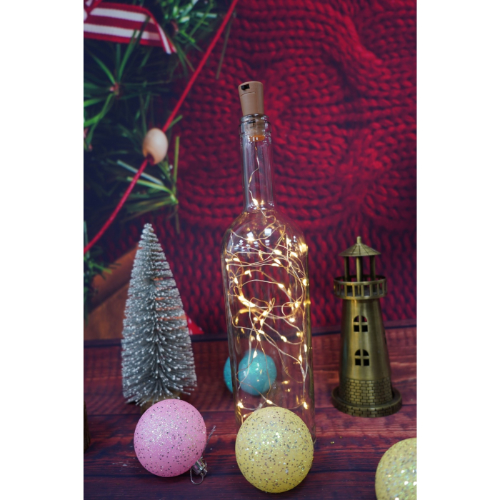 Instalatie Craciun, Liniara, 3 m, Baterii, 30 LED-uri, Alb Cald, Fir Cupru, Interior/Exterior,