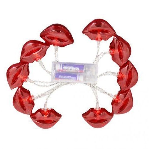 Instalatie de Craciun, ®, Tip Sir cu Baterii, 1.5 m, 10 LED-uri, Model Buze, Rosu