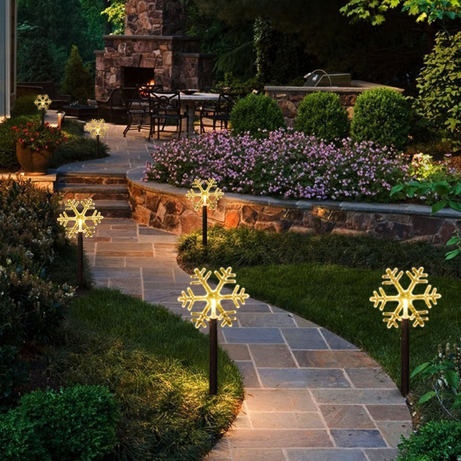 Set 5 lampi LED cu baterii pentru exterior sub forma de Fulg de nea.