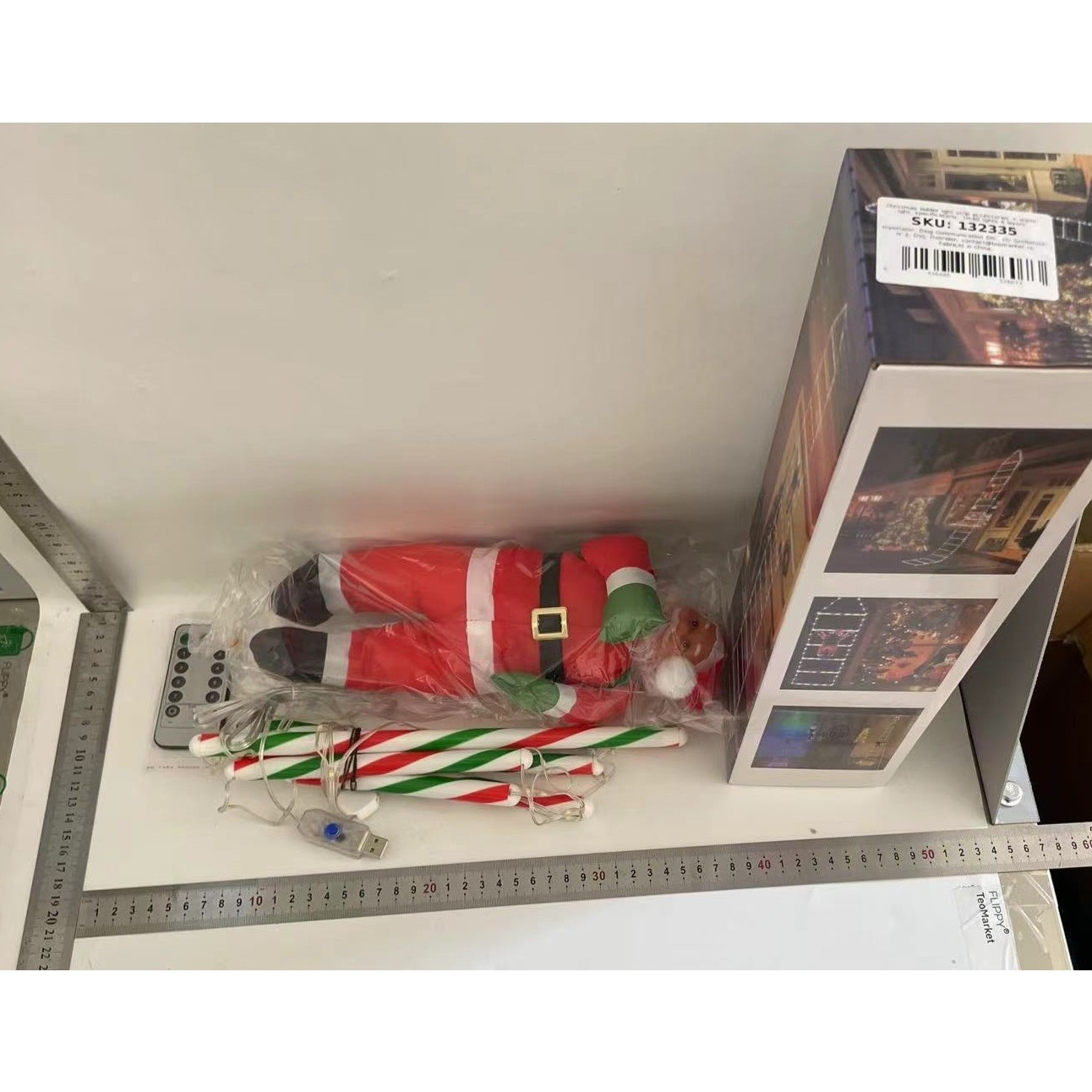 Instalație LED de Crăciun, , cu Accesorii, Lumină Caldă, Lungime 1m, 80 de Luminite, 8 Moduri, Model Moș Crăciun pe Scară, Multicolor