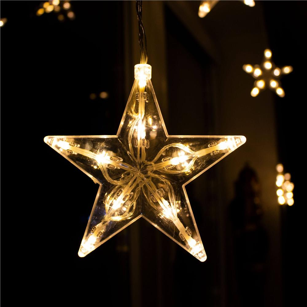 (DL) Ghirlanda luminoasa tip perdea cu stelute 72 LED-uri, 2m, pentru interior/exterior, iluminare alb