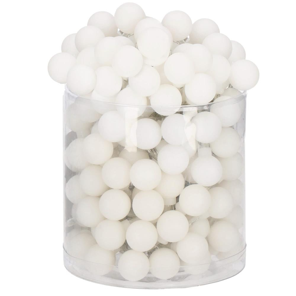 SARBATORILE SUNT TOT MAI APROAPE... Luminitele noastre de Craciun arata grozav pe un pom de Craciun, pe arbusti in gradina sau atarnand usor pe balustrada balconului. Acestea sunt accentul perfect pentru a crea o atmosfera festiva in jurul tau. Cu o gama larga de culori, puteti gasi cea mai potrivita pentru a va decora casa, gradina sau afacerea. Lasa-te purtat de atmosfera de sarbatoare si fa din Craciun un moment special pentru tine si familia ta. Luminile noastre se caracterizeaza prin calitate si manopera de inalta calitate. Le puteti utiliza atat in interior, cat si in exterior.Lantul luminos este format din LED-uri sub forma de bila. Acestea au fost plasate pe fire de cupru durabile, care sunt rezistente la rupere. Totul este alimentat de baterii, astfel incat il puteti atarna oriunde fara sa va faceti griji daca exista o priza de curent in apropiere. LUMINILE CU LED AU UN PROGRAMATOR CU 8 FUNCTII: COMBINATION (combinatie de moduri diferite)IN WAVE (se aprinde in valuri)SEQUENTIAL (iluminat secvential)SLO-GLO (stralucire lenta)CHASING / FLASH (flash rapid)SLOW FADE (estompare lenta)TWINKLE / FLASH (intermitent)STEADY ON (lumina continua) PARAMETRII: Culoare alba caldaProgramator cu 8 functiiLungime totala 7,5 mLungimea cablului de la sursa de alimentare la 1 lampa 30 cmAranjament de lumini 15 cmLumini 50 micro LED-uriLED-uri de economisire a energieiAlimentat cu 3x baterii AA (nu sunt furnizate)Arderea unei diode nu stinge setul!Rezistent la apa - fara sursa de alimentareLumini pe fire de cupru durabile cu diametrul de 0,9 mm, rezistente la rupereCertificat CE, RoHSClasa de protectie IP44Utilizare in interior si exteriorIzolatie transparentaMargele albe maturate cu diametrul de aproximativ 16 mm