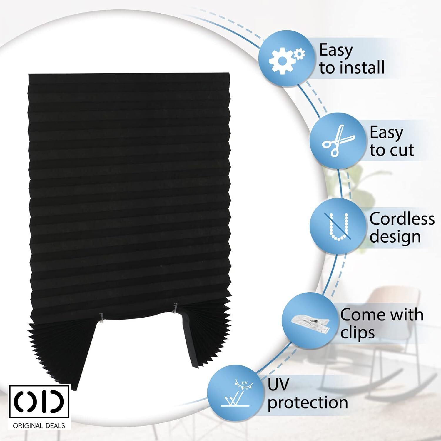 Original Deals® Jaluzea Plisata tip Draperie pentru Fereastra cu Sistem de Prindere Autoadeziv Inclus, din PVC Premium