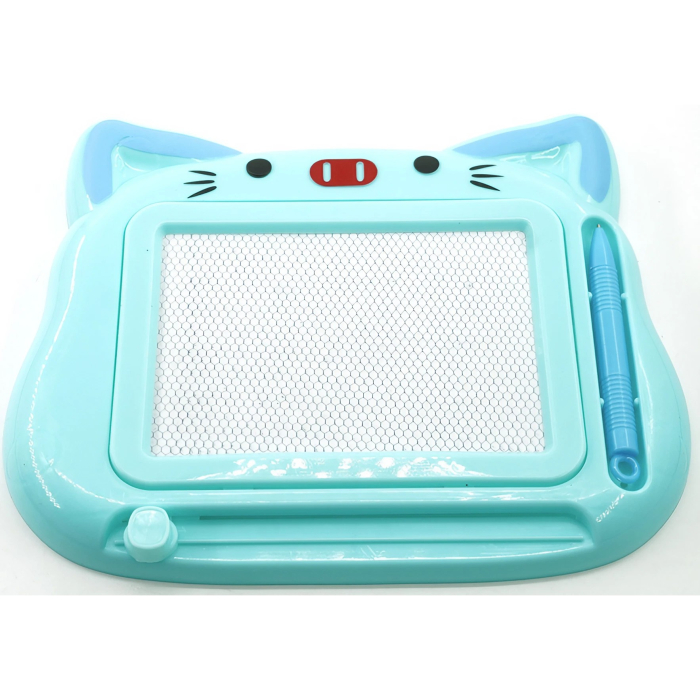 Tablita Magnetica de Scris si Desenat, , Model Pisica, cu Creion, Dimensiuni 23.2x18.5 cm, Suprafata Desen 14.6x10.4 cm, Dezvolta Imaginatia si Creativitatea, Incurajeaza Exersarea Scrisului, Albastru