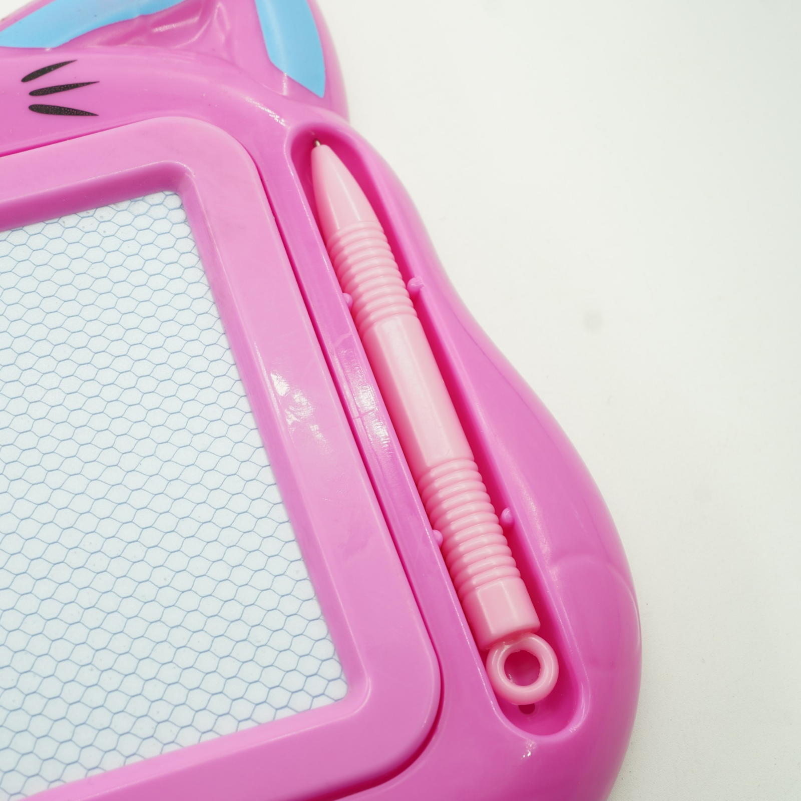 Tablita Magnetica de Scris si Desenat, , Model Pisica, cu Creion, Dimensiuni 23.2x18.5 cm, Suprafata Desen 14.6x10.4 cm, Dezvolta Imaginatia si Creativitatea, Incurajeaza Exersarea Scrisului, Fucshia