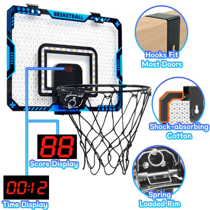 Descriere Produs: Cos de Baschet pentru Copii cu Tabou de Bord Electronic, Minge și Pompa – 2 Moduri, Interior/Exterior