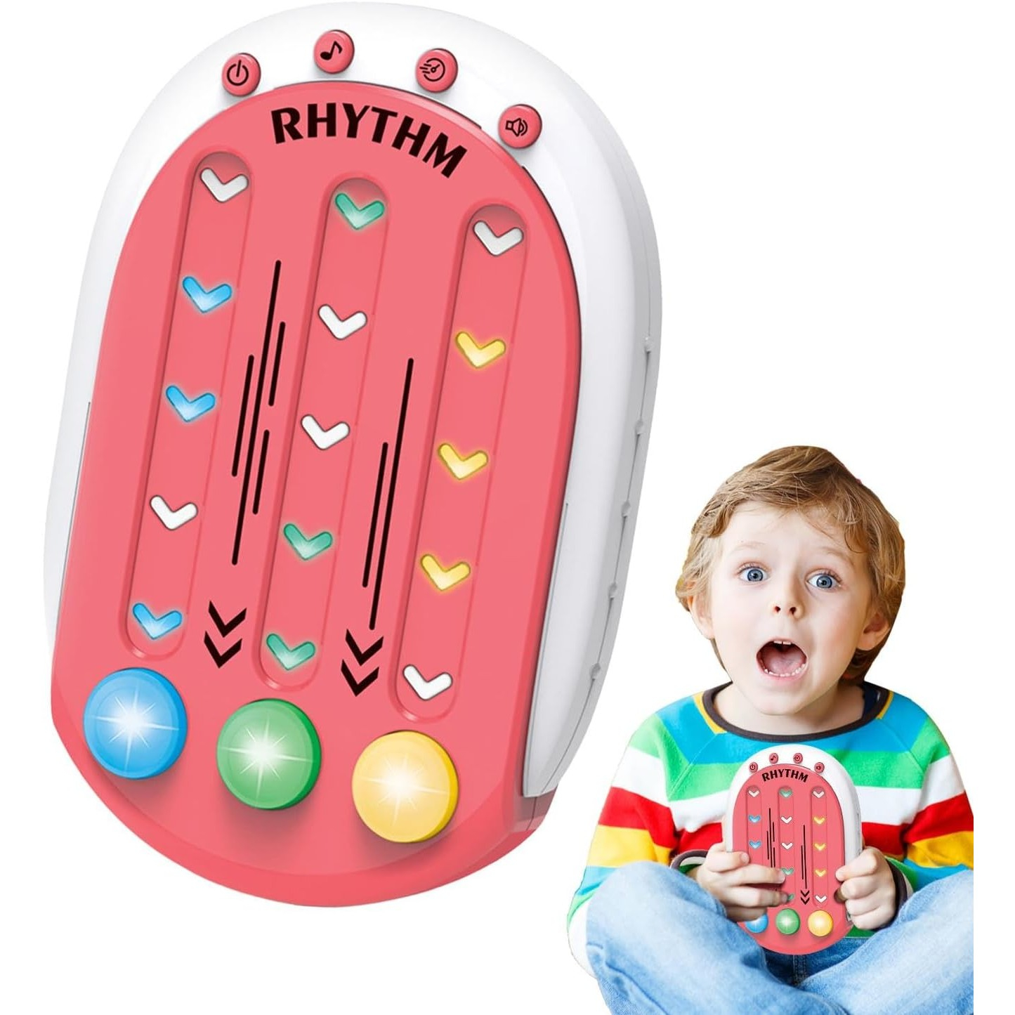 Această jucărie interactivă oferă o experiență captivantă și educativă pentru copii printr-un joc bazat pe ritmuri muzicale și lumini. Perfectă pentru dezvoltarea abilităților motorii și cognitive, jucăria combină distracția cu învățarea, fiind potrivită pentru copiii cu vârsta de peste 3 ani.