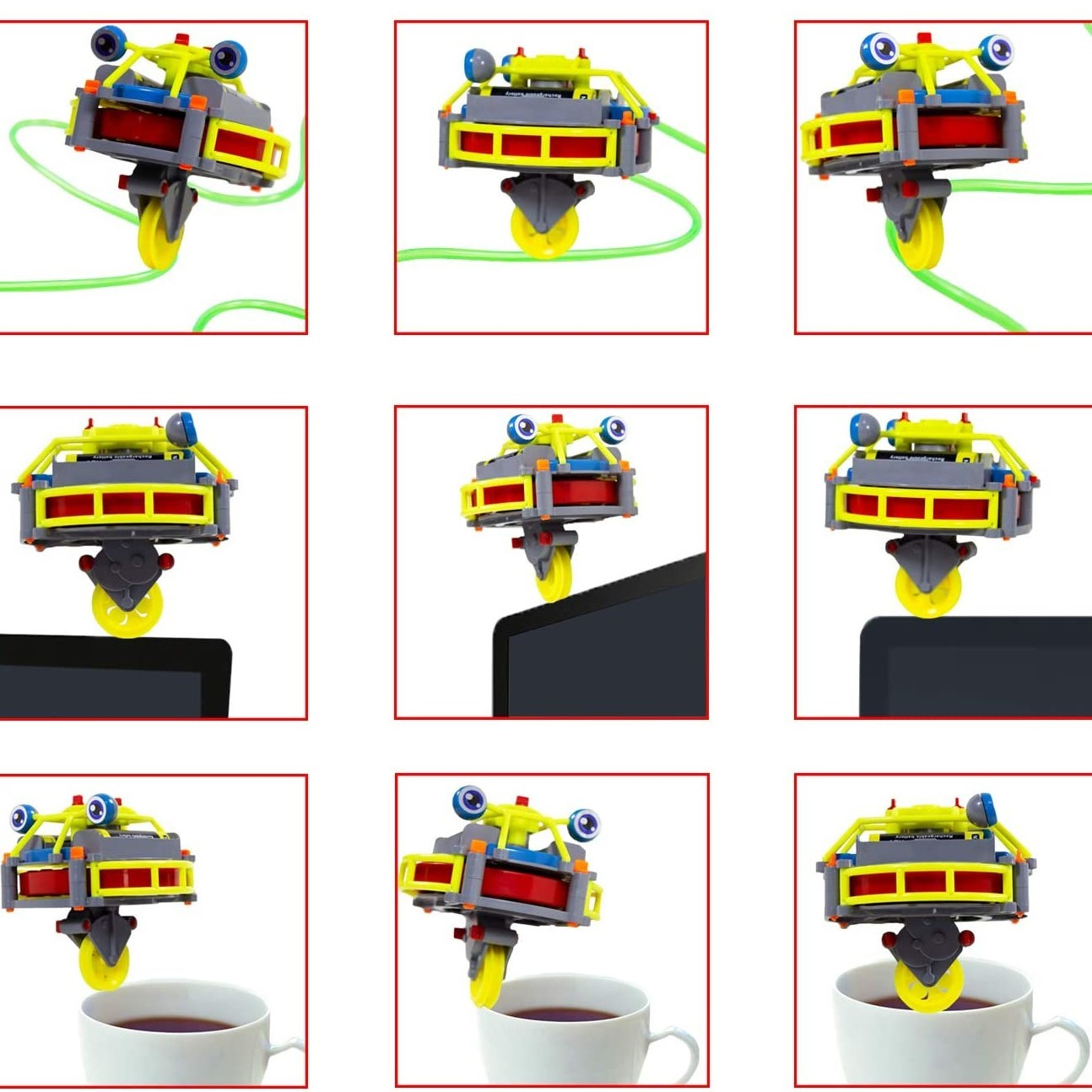 Dupa ce l-ati asamblat, adauga-ti doua baterii AA (nu sunt incluse), porniti-l, asezati monociclul pe suportul din pachet, iar dupa ce viteza este stabila il puteti pune pe orice obiect care se potriveste cu roata acestuia.