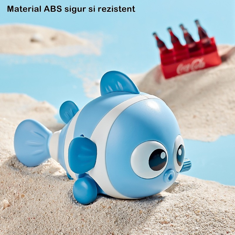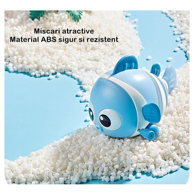 Învățare prin experiență: Jucăria "" nu doar aduce distracție, ci și oportunități de învățare prin experiență. Copiii vor putea observa cum mișcările pestișorului sunt generate de acționarea cheiței. Această experiență simplă îi va familiariza cu conceptul de cauză și efect, stimulând gândirea logică și creativă. În timp ce se bucură de joc, vor dezvolta în mod natural abilități de observație și analiză, contribuind la dezvoltarea lor cognitivă.
