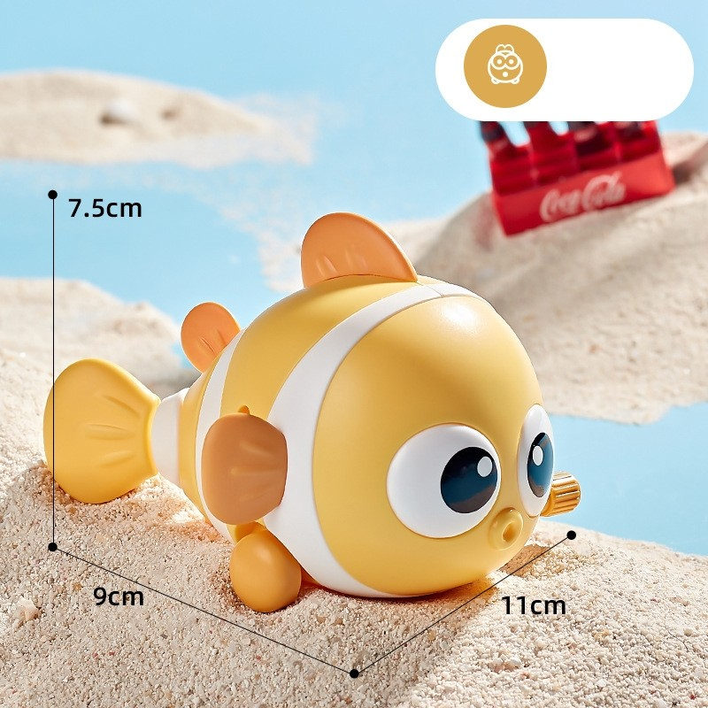 Jucarie mecanica pentru copii , pestisor haios, cu cheita, distractiv, se taraste, se misca, 11 x 9 x 7.5 cm cm, galben