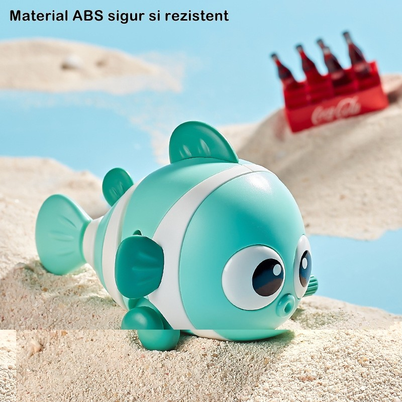 Învățare prin experiență: Jucăria "" nu doar aduce distracție, ci și oportunități de învățare prin experiență. Copiii vor putea observa cum mișcările pestișorului sunt generate de acționarea cheiței. Această experiență simplă îi va familiariza cu conceptul de cauză și efect, stimulând gândirea logică și creativă. În timp ce se bucură de joc, vor dezvolta în mod natural abilități de observație și analiză, contribuind la dezvoltarea lor cognitivă.
