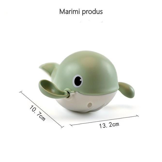 Balena noastra inotatoare vine cu un zambet larg pe fata si gata sa aduca buna-dispozitie in timpul de baie al copilului si al dvs! Functioneaza fara baterii si orice tip de electricitate, doar roteste de cheita si pregateste-te sa vezi un vitezoman marin.