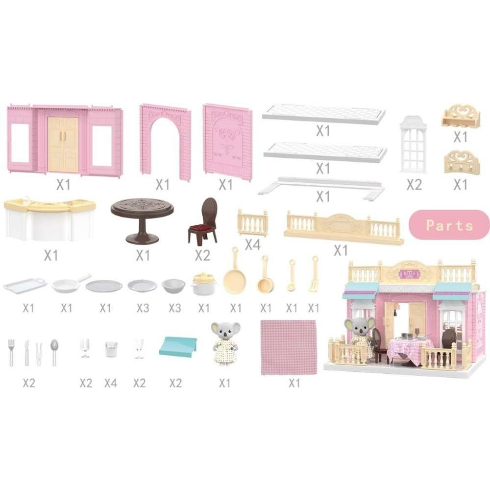 Pachetul include atat piesele pentru a construi bucataria, cat si ustensilele de bucatarie pe care copilul tau le poate invata de la o varsta mica, dar si o figurina simpatica pentru si mai multa distractie.